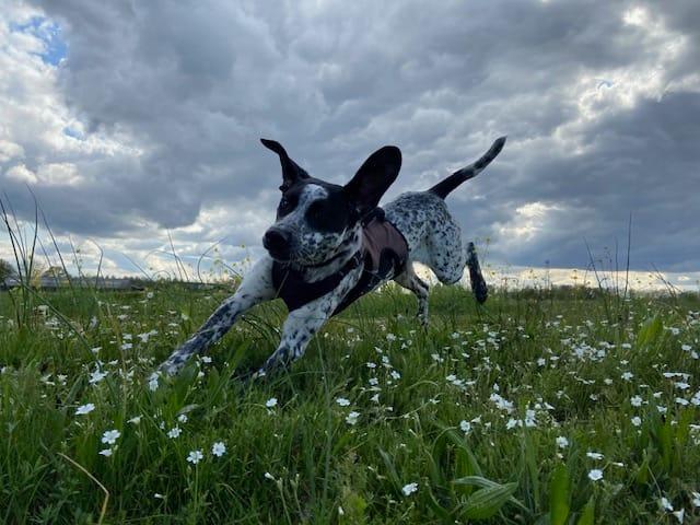 Kaya is een prachtige, bijna vijf jaar oude dame die oorspronkelijk uit Griekenland komt. De eerste maanden van haar leven bracht ze door op het eiland Lesbos in een pleeggezin met jonge kinderen, voordat ze naar Nederland kwam. Sindsdien is ze bij haar huidige gezin uitgegroeid tot een trouwe en gevoelige hond met een duidelijke eigen wil. Ze geniet enorm van snuffelwandelingen, want ze heeft duidelijk jachthondgenen. Aan de lijn wandelen vindt ze soms lastig, maar zodra ze los mag lopen komt haar gehoorzaamheid prachtig naar voren: ze wacht keurig bij kruispunten in het bos en houdt haar baasje goed in de gaten. In de tuin of los in de natuur voelt ze zich het meest op haar gemak.