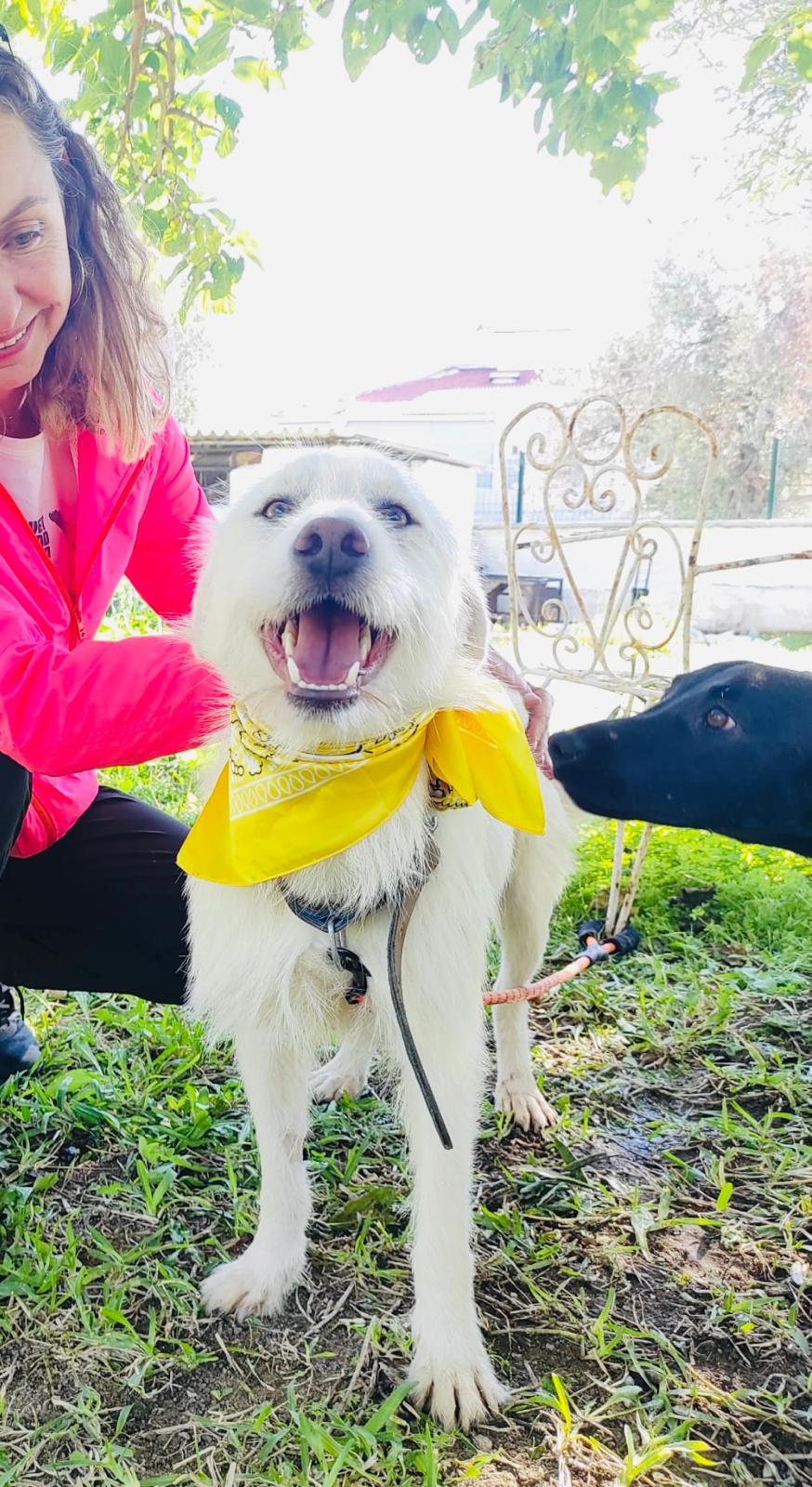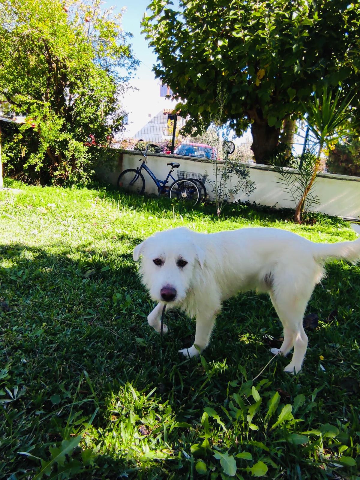 Beyaz is een mooie, leuke, lieve, actieve jonge hond. Hij is sociaal naar honden en mensen toe. Hij is een middelmaatje en weegt 18 kilo.
