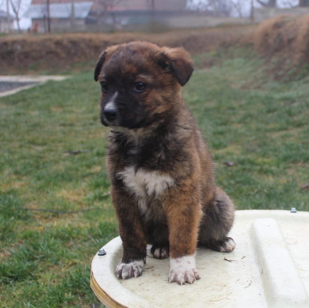 Op 2 januari reed Michael terug van het boodschappen doen naar huis in Horia (Roemenië) . Net na hij het dorp in reed zag hij in de berm bij een verlaten fabriek een bouwzak liggen en 6 hele kleine pups rond dwalen. Hij is gestopt om in ieder geval wat voer achter te laten, maar zag ook dat 1 van de pups sleepte met zijn pootjes en het leek of deze al aangereden was. Een levens gevaarlijke plek voor zo kleine baby s en dus ging hij snel naar huis om Monique en benches op te halen. Ze zijn direct terug gegaan en hebben de kleine familie in geladen en natuurlijk extra goed uitgekeken of er niet nog ergens eentje verdwaald was, maar dat was gelukkig niet zo. De pups zijn in de bouwzak gedumpt en de pups hebben zich een weg naar buiten geknaagd. Eenmaal op de Casa zijn ze de quarantaine ruimte in gegaan en hebben daar op zeker voor het eerst een volle buik gegeten en een nacht heel lekker en veilig kunnen slapen. Billie woog bij het eerste bezoek aan de dierenarts 2.1 kg en werd op 7 weken geschat. Hij is de middelmaat van het nestje en zeer onbevangen en benaderbaar vanaf dag 1. Helaas zat hij ook vol met wormen, dus dat was voor toen het allerbelangrijkste om van al die wormen af te komen, daarna werden de vlooien aangepakt.