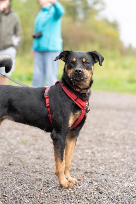 Bobby is een jonge actieve hond, die voldoende beweging.nodig heeft, zodat ze lekker haar energie kwijt kan. Ze ligt graag bij je, houdt van samen spelen of knagen op een botje.