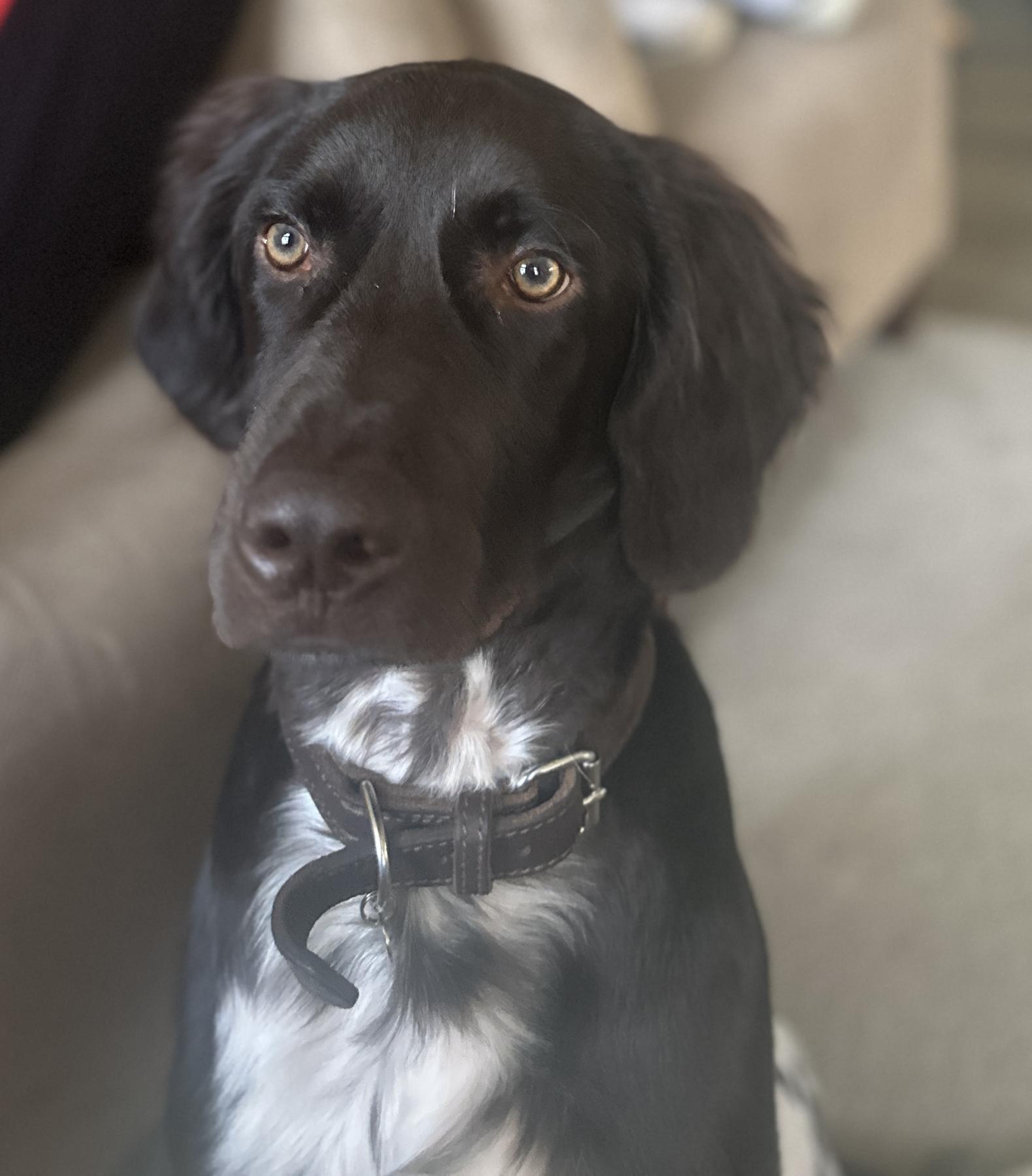 In huis een lieve sociale hond. Nog wel jong en speels. Wil graag geknuffeld worden, aandacht geniet hij van. Luistert in huis goed.