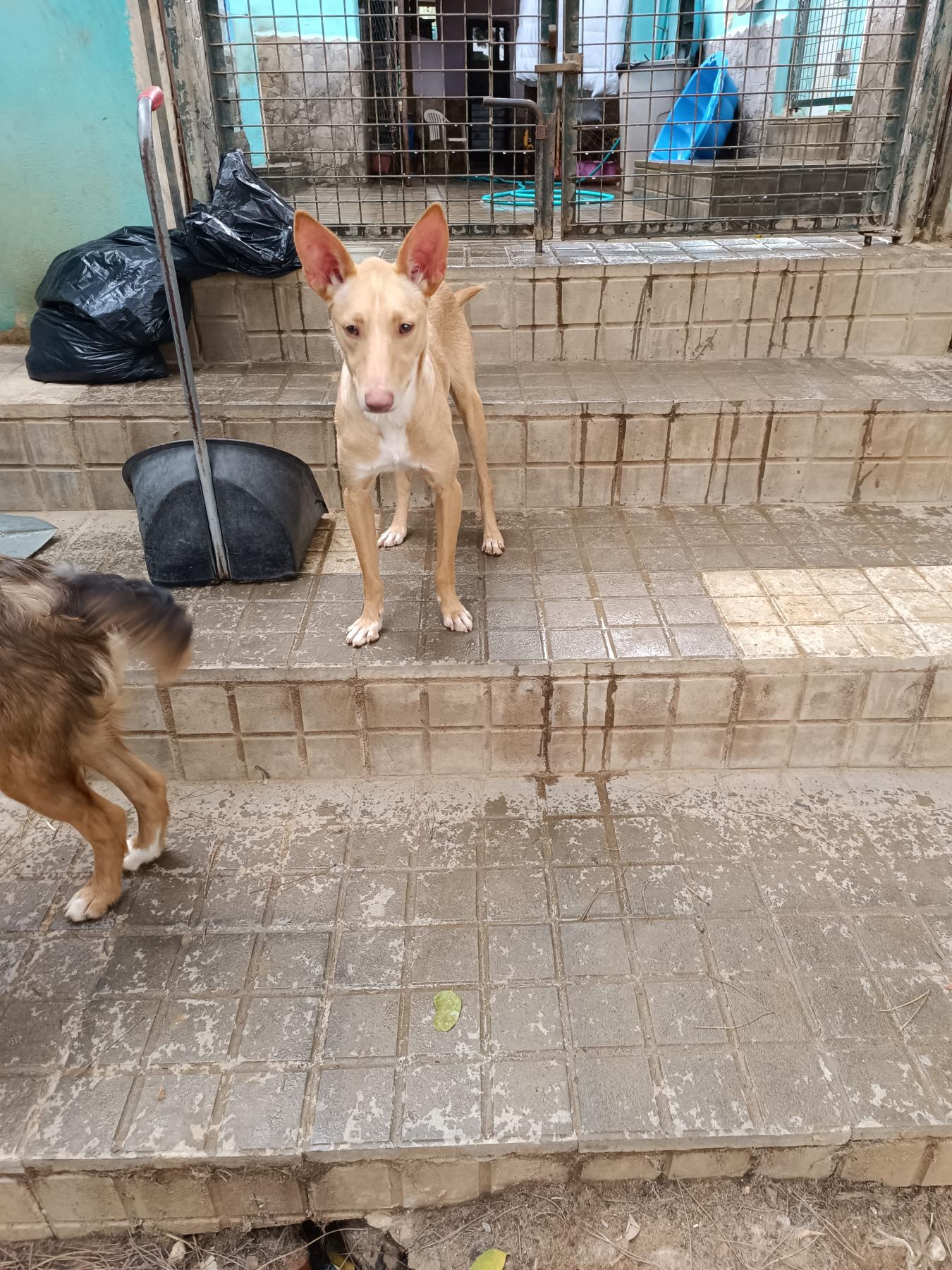 Cañailla is gevangen met een vangkooi en zo in ons asiel terecht gekomen. Ze leek gelijk blij dat ze was gevangen. Ze ging al snel kwispelen