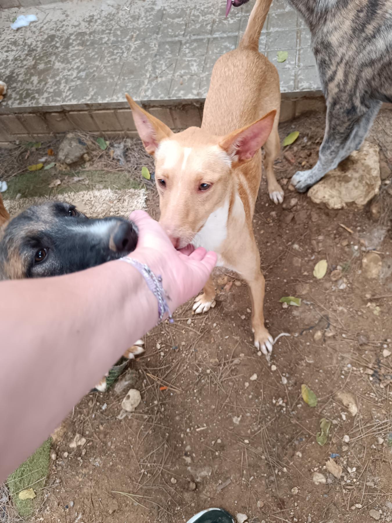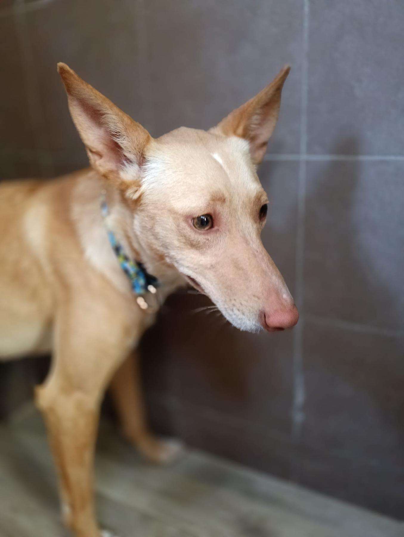 Cañailla is een beetje verlegen podenca, die wel snel gaat vertrouwen en naar je toe komt. Ze heeft even tijd nodig. Ze wordt graag geaaid. Ze is speels, zachtaardig en lief. Ze is prima met honden. Met katten kunnen we haar testen