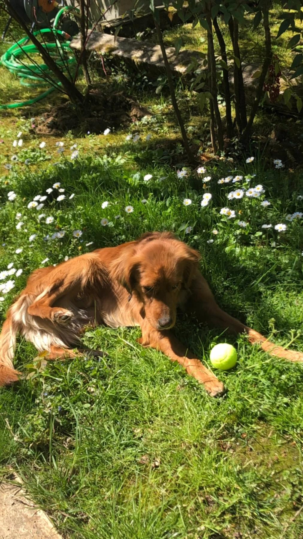 Lieve Chiko werd gevonden in een bos waar hij was gedumpt. Hij werd gevonden en gered door een familie. Hij was vreselijk mager en zat vol met teken.