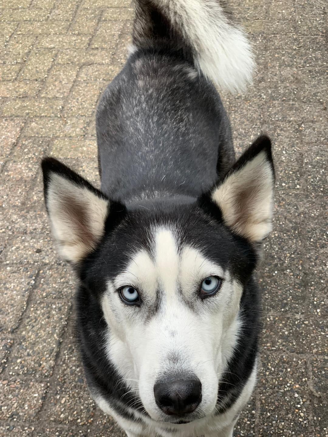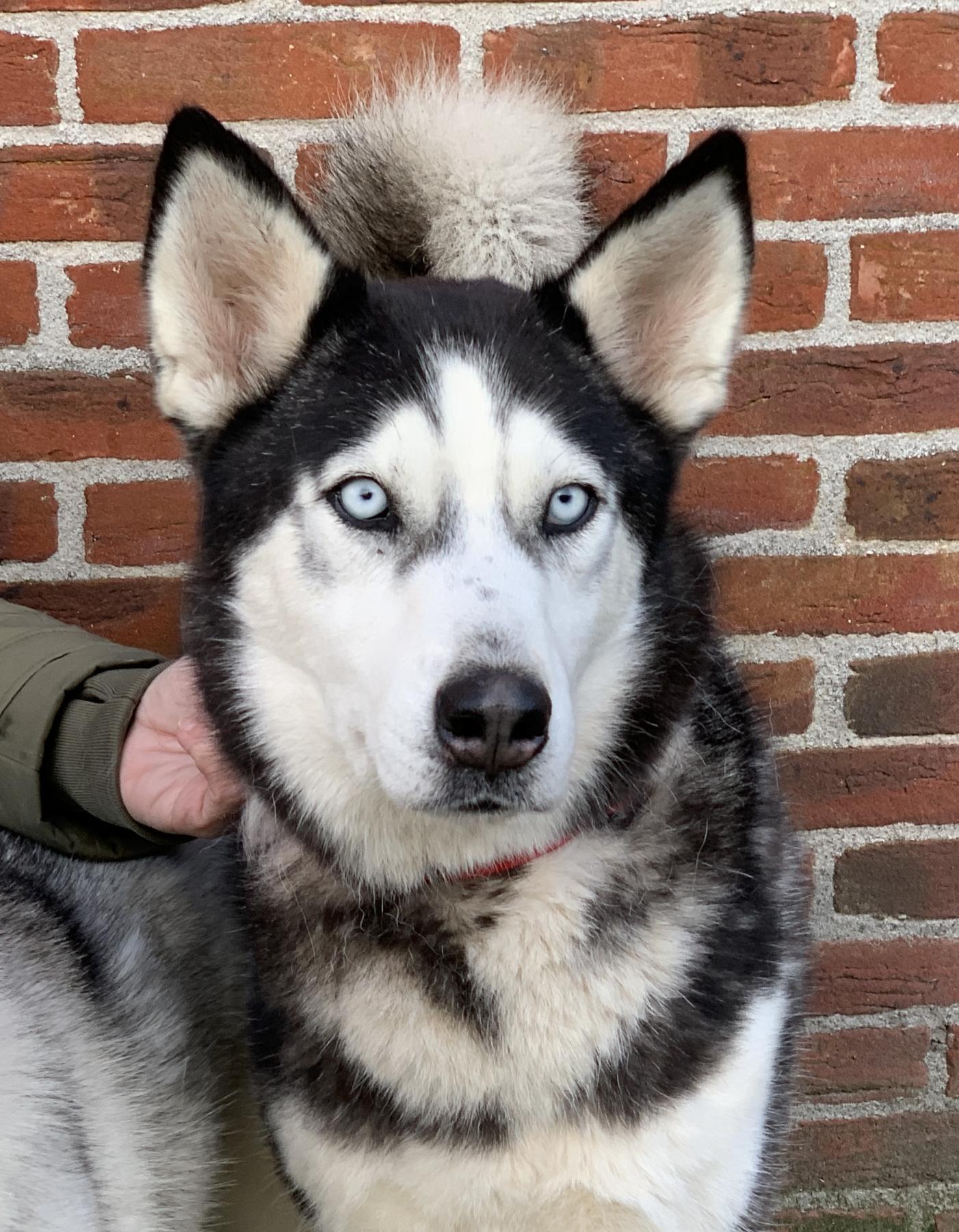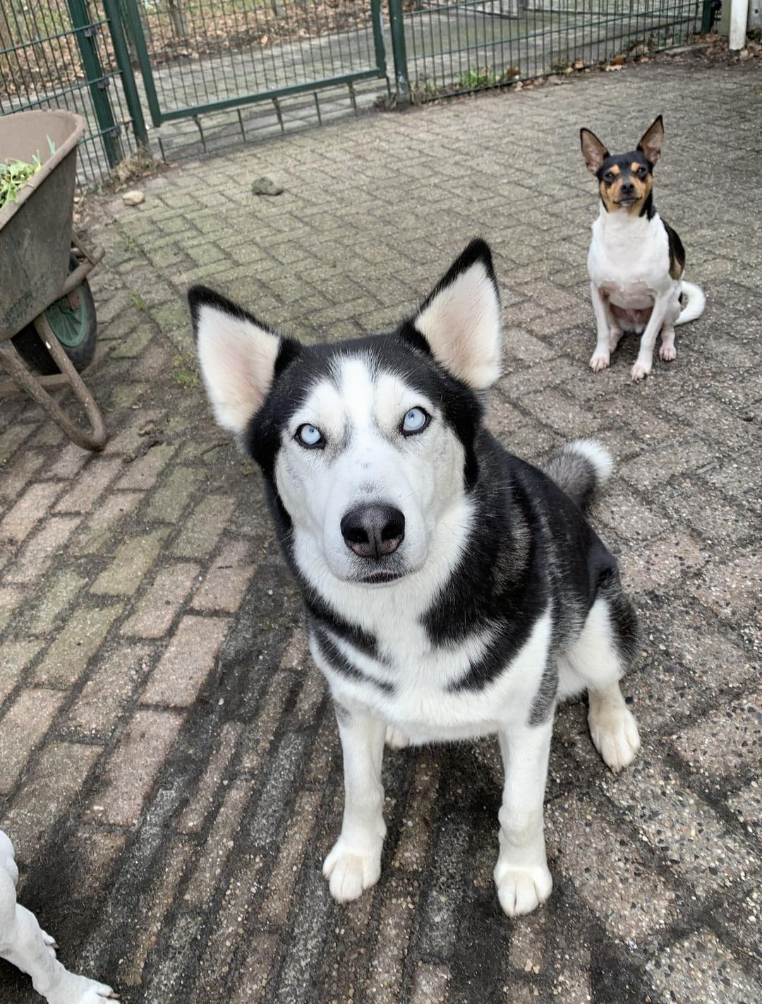 Dama is een prachtige huskydame die met 58cm behoorlijk aan de maat is. Ze is 2 jaar oud (april 23) en heeft een typische husky uitstraling met haar ijsblauwe ogen. Ook haar karakter is typisch husky, met prettige kanten zoals vriendelijk, sociaal en speels, maar zeker ook de uitdagende kanten zoals slopen, graven, eigenwijs, slecht alleen kunnen zijn en trekken aan de lijn. Ze kan in de roedel wat dominant overkomen en we zien haar het liefst bij een reu geplaatst of als hond alleen. Ze mag graag spelen met andere honden maar is voor kleiner formaat honden wat te. Kan zich ook prima met speeltjes vermaken. Ze wil niet opgesloten zitten in een bench maar los in huis is het nog opletten want ze moet nog alles leren als huishond. Ze loopt wel makkelijk mee aan de lijn. Aanhankelijk en open.