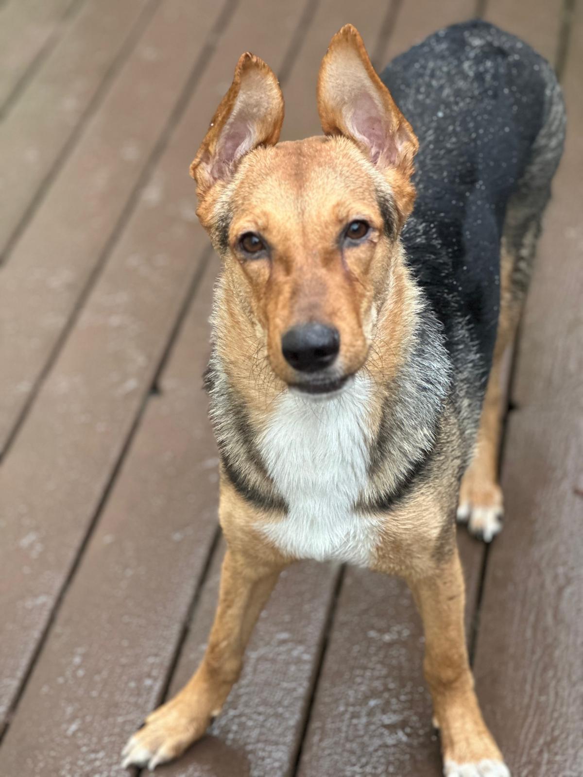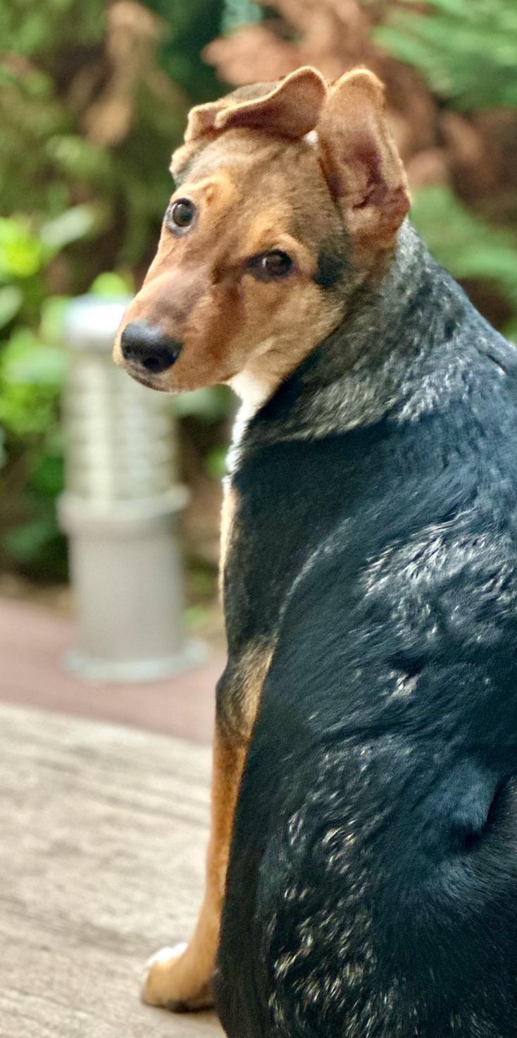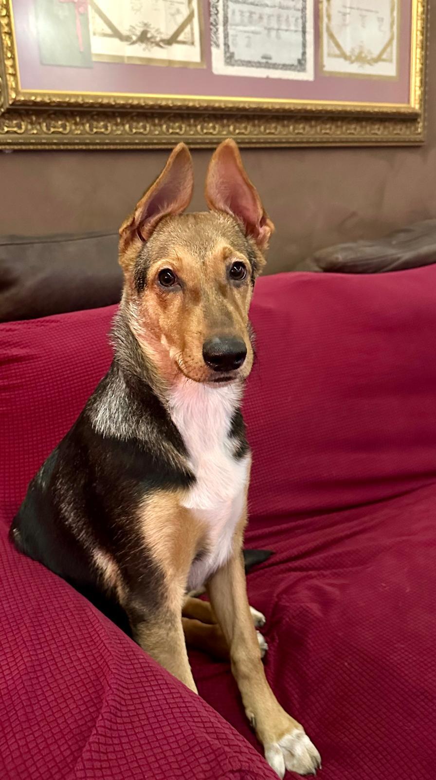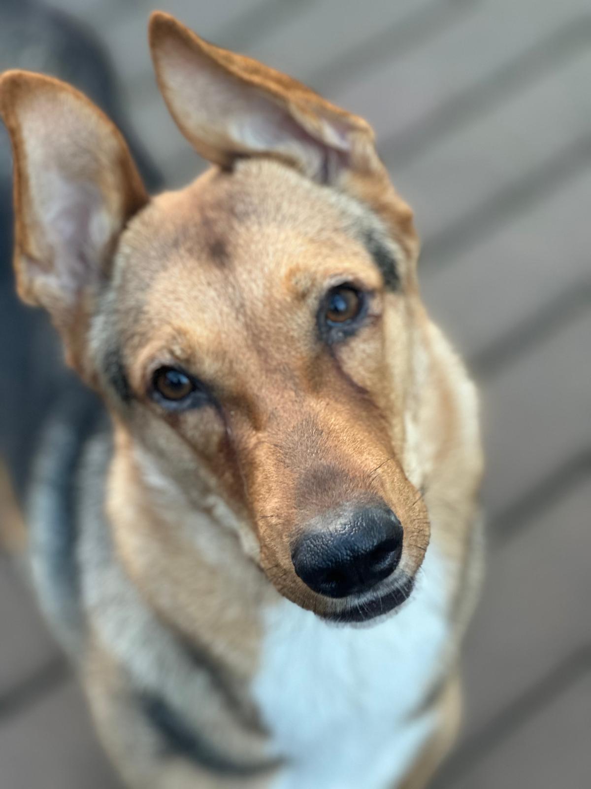 Flora is ongelooflijk intelligent — je ziet het in haar ogen. Ze leert razendsnel, pakt nieuwe dingen snel op en past zich opvallend goed aan. Ze is speels, energiek en sterk, maar ook sociaal, liefdevol en heeft aparte rechtopstaande oren.