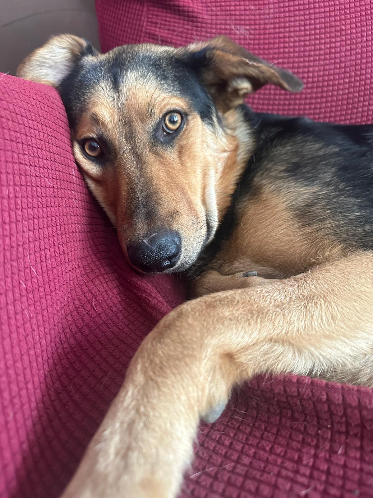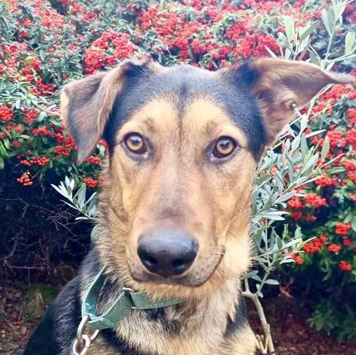 Maak kennis met Jolly – zachtaardige hond met zijn lieve ogen en af en toe opstaande oren.