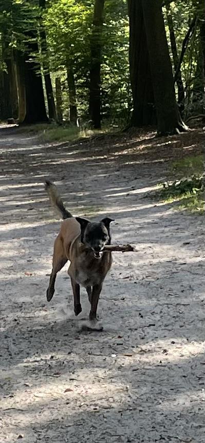 Ligt lekker op zijn eigen plaats. Houd van lange wandelingen waar hij los kan lopen. Kan goed spelen met andere honden.