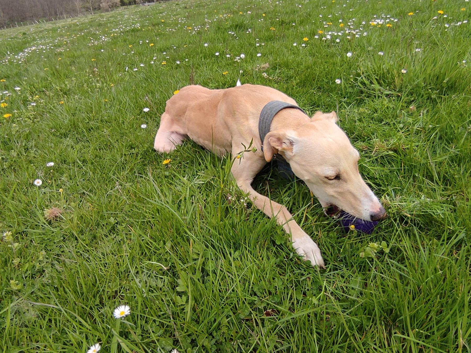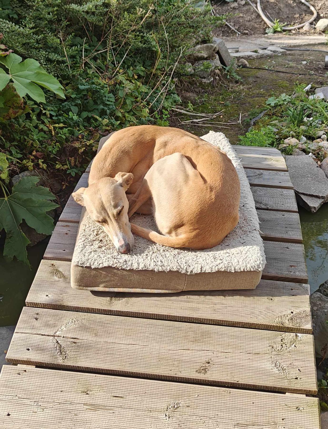 Momo is een grote, lieve en mensgerichte hond met een zacht karakter en een vrolijke uitstraling. Hij is aanhankelijk, houdt van knuffelen en ligt ’s avonds graag rustig bij je op de bank. Dagelijkse wandelingen vindt hij heerlijk; vanwege zijn snelheid en jachtinstinct loopt hij altijd aangelijnd.