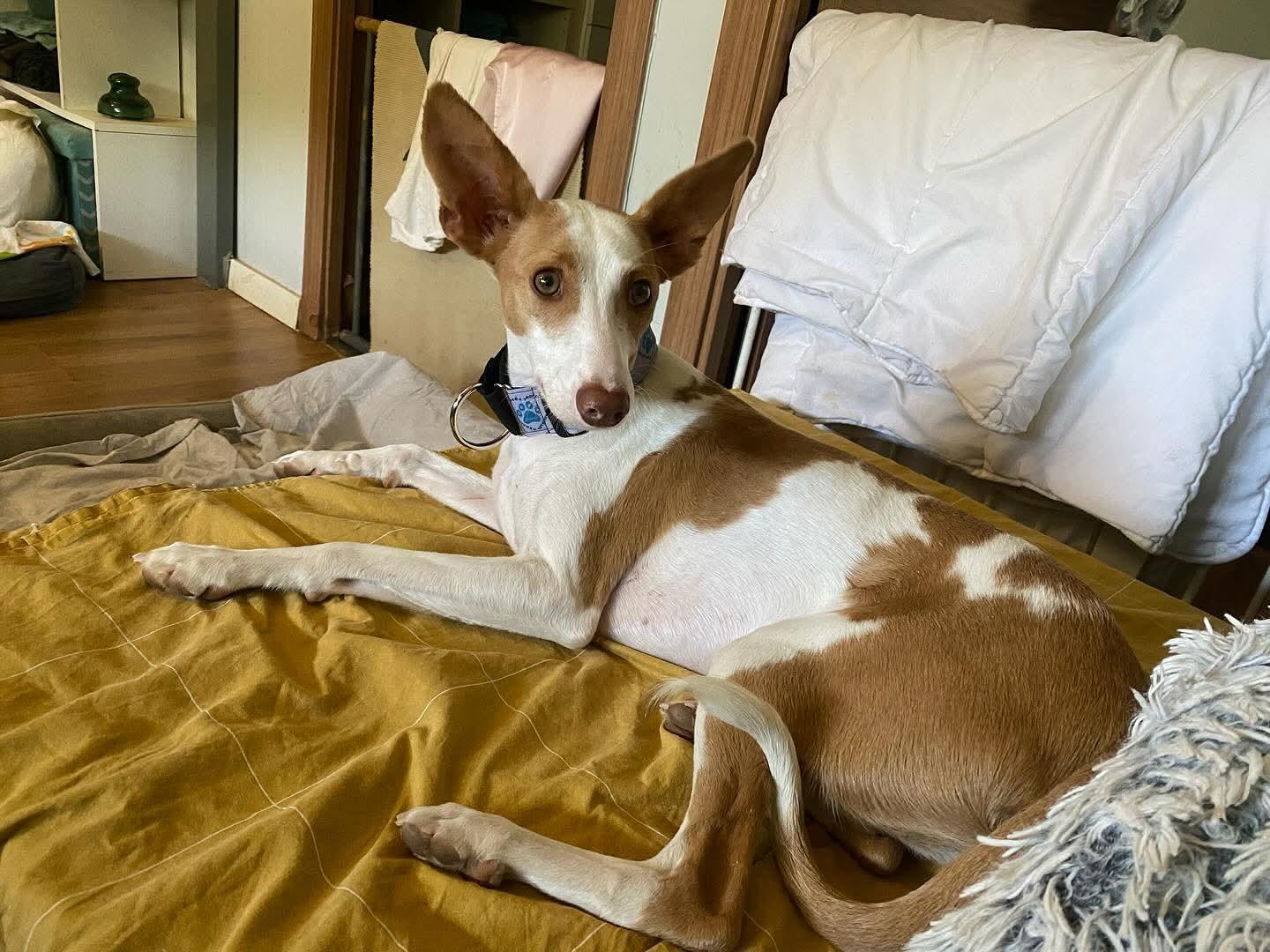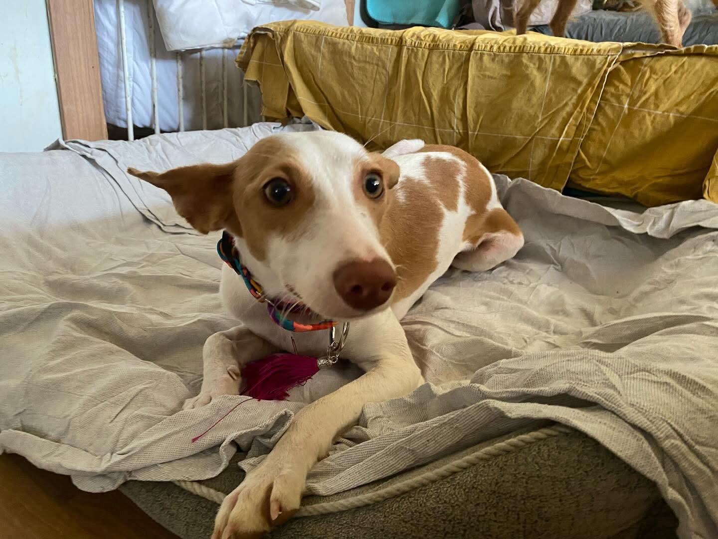 Rula is pas kort in ons asiel. Eerst was ze een beetje verlegen, zoals bijna elke podenco, maar al snel kreeg ze vertrouwen en volgt ze de mensen in het asiel op de voet. Ze is heel vrolijk en blij. Kan genieten van alle knuffels en aandacht. Een hondje om verliefd op te worden.