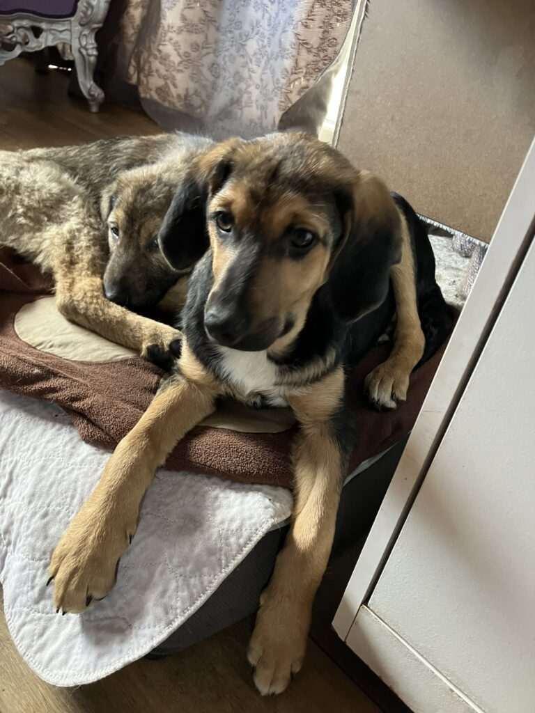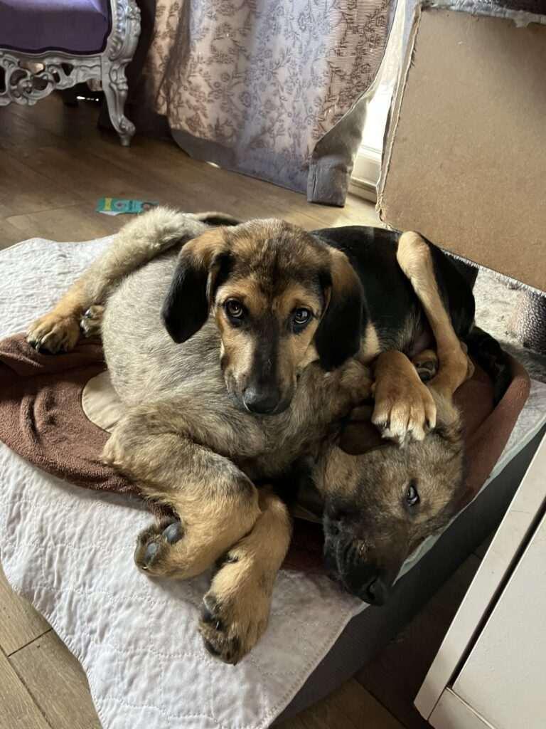Rusty werd met Alva en Paco gevonden in een volledig verlaten gebied in Bosnië.