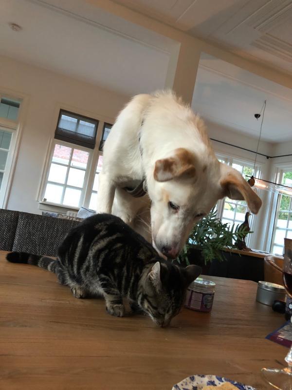 Sam kan met katten, maar heeft moeite met andere honden in huis