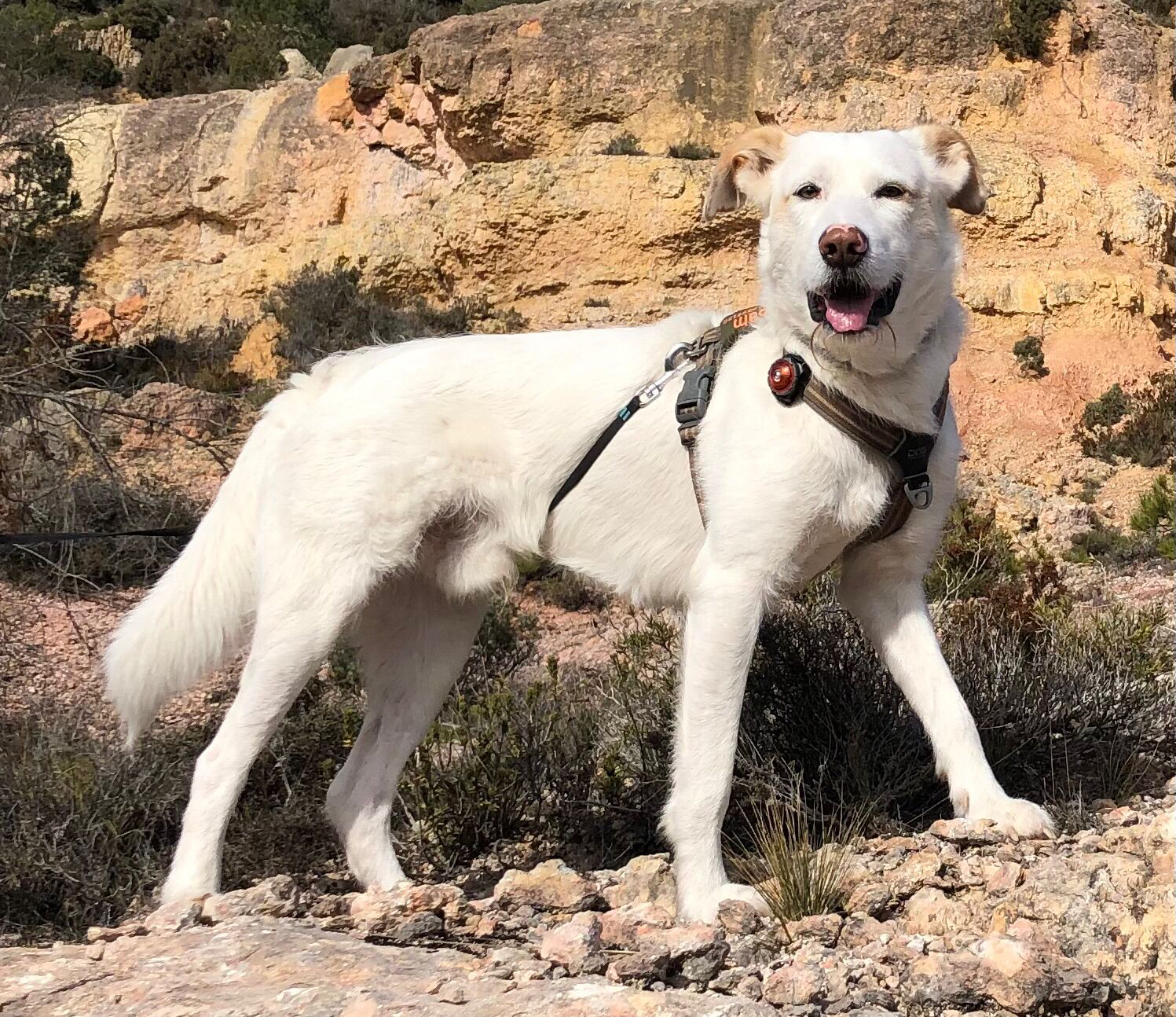 Uitlaten doen we tegenwoordig niet meer in het losloopgebied vanwege zijn onzekerheid en uitvalgedrag, vooral naar intacte reuen. Als puber is hij eens aangevallen door een grote hond.