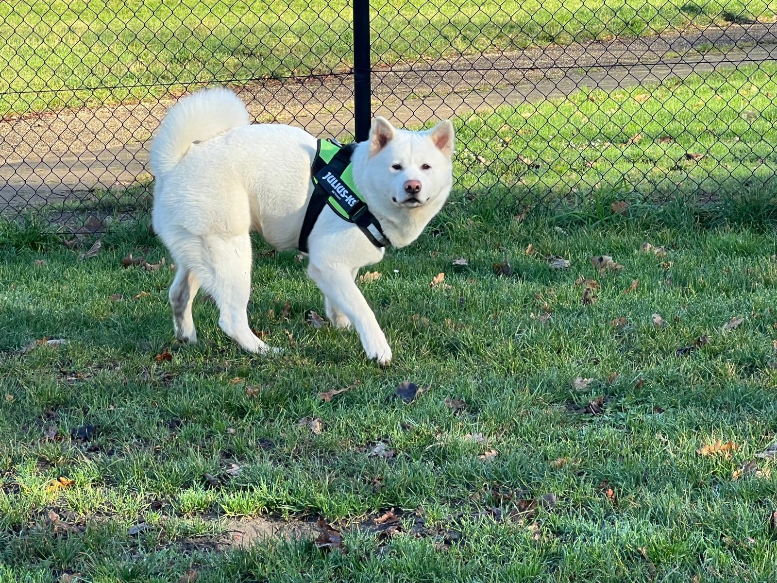 Shiro is een zeer lieve hond, wij hebben hem tijdelijk opgenomen omdat zijn vorige baasje ivb met ziekte niet meer konden houden.
