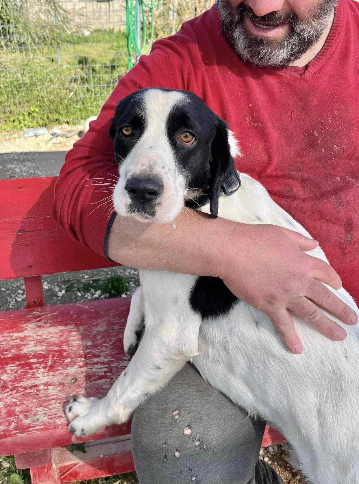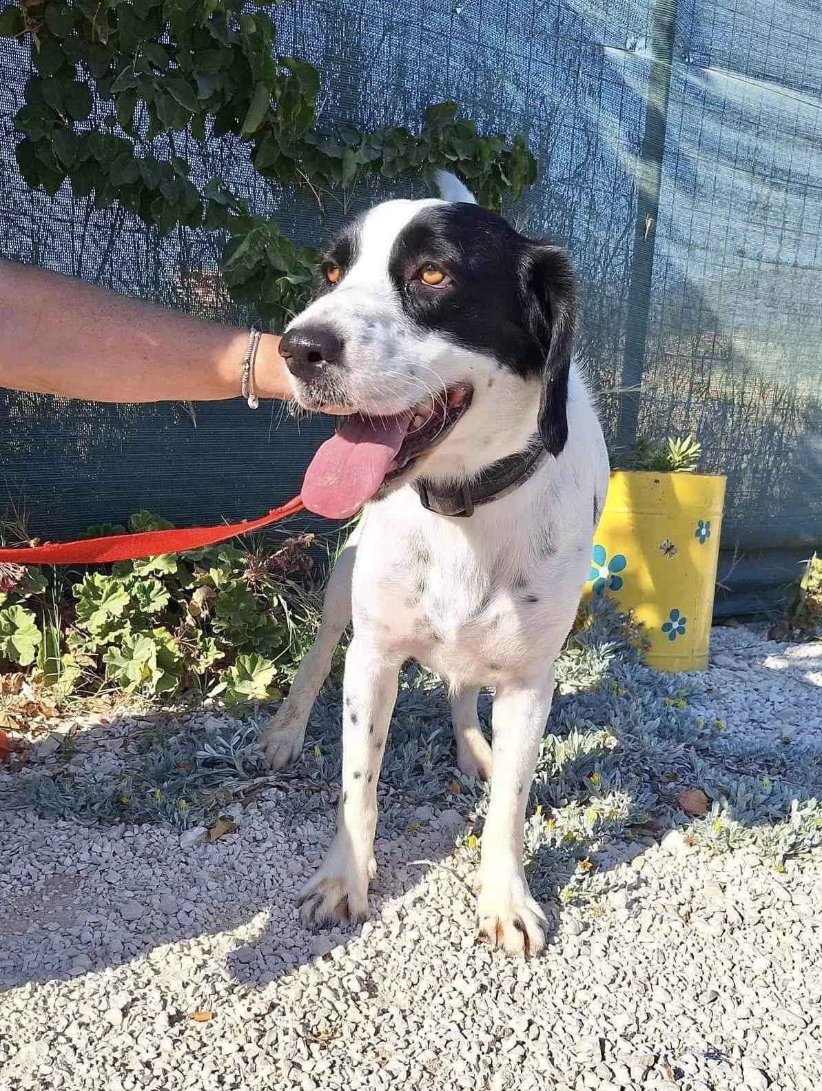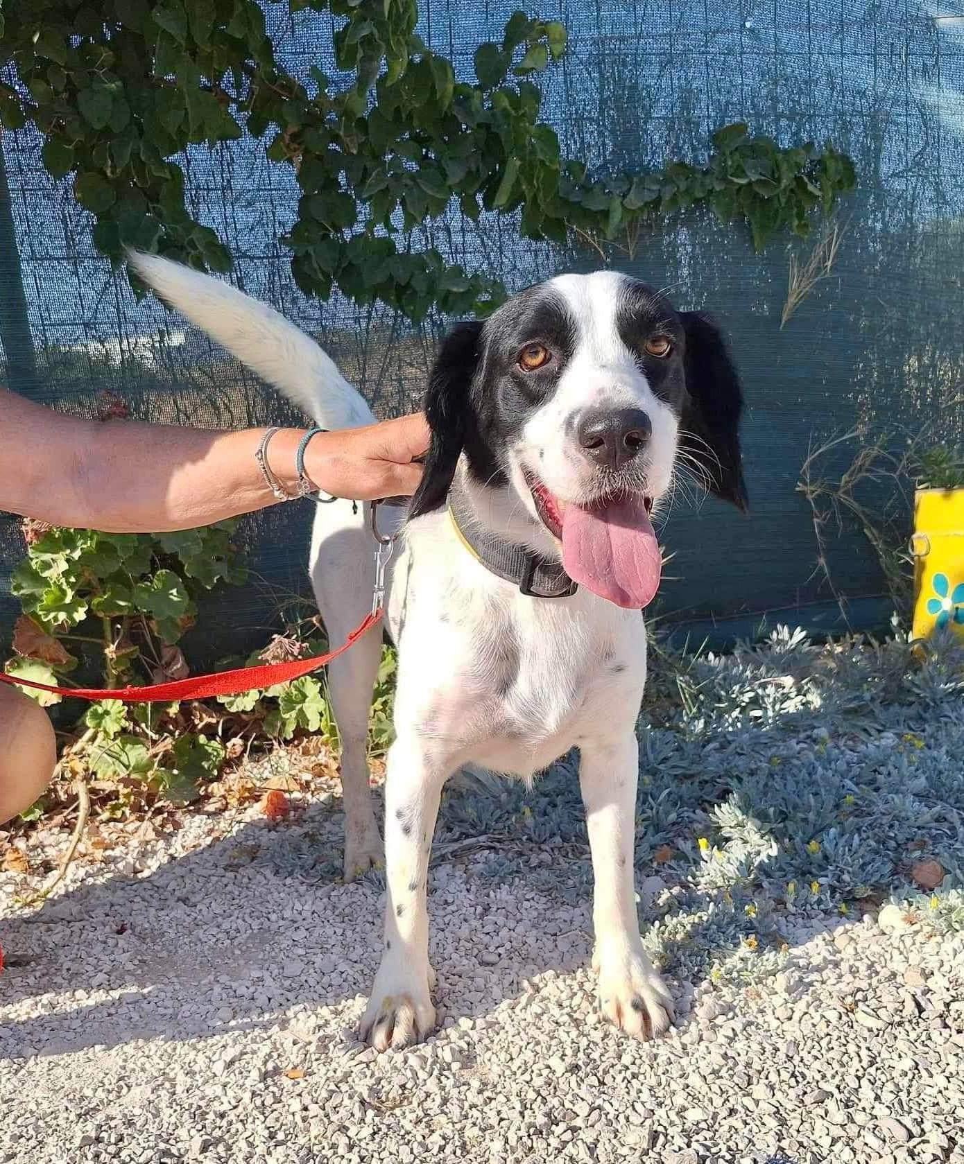 Spotty heeft zijn naam te danken aan de verschillende plekken (spots) waar hij werd gesignaleerd en aan de zwarte vlekken op zijn vacht. Spotty is een gezellige knuffelaar en gek op zijn verzorgers. (zie de filmpjes). Sporty is een sportieve, jonge hond.Hij gaat goed om met de andere honden in de shelter. Met katten is hij echter helemaal niet goed, dus een gezin met katten is geen goed idee