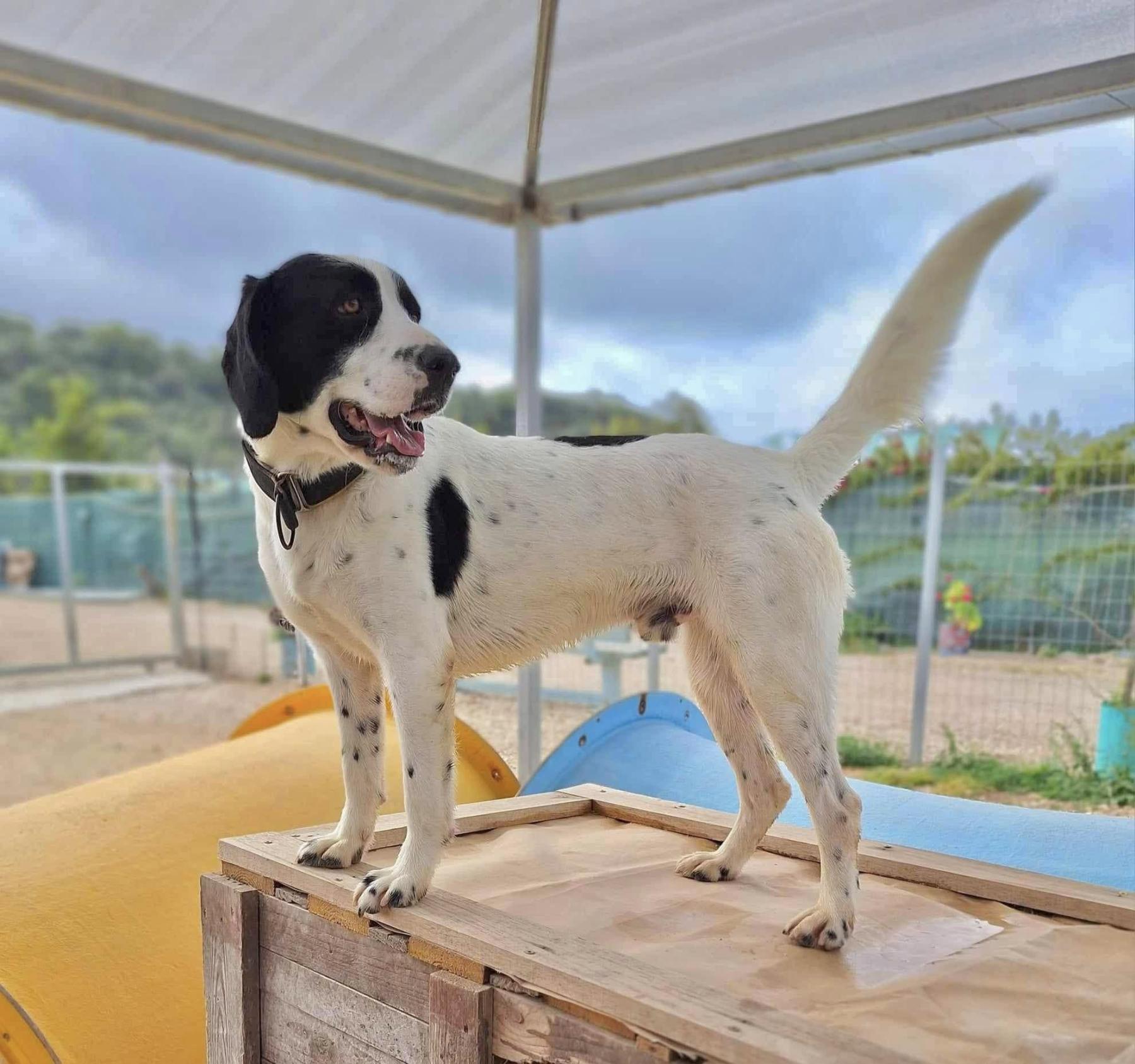 Hij krijgt helaas te weinig beweging in de shelter, hij is een beetje aangekomen de laatste maanden, dus hoogste tijd voor een gouden mand, waar hij lekker actief bezig kan zijn. We zoeken ervaren en dus actieve mensen, met een huis met tuin. De omgeving moet lekker groen zijn, met voldoende wandelmogelijkheden en uitdaging voor Spotty. Wij denken dat als hij eenmaal goed gewend is, Spotty zijn beweging en uitdaging nodig zal hebben. Indien gewenst kunnen we vragen meer video’s van Spotty te maken en wellicht zelfs een live videoverbinding te maken.