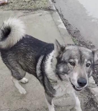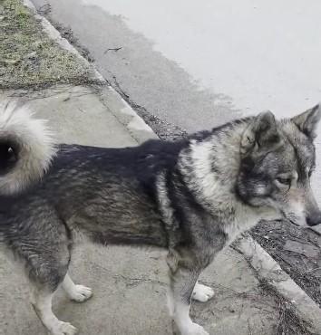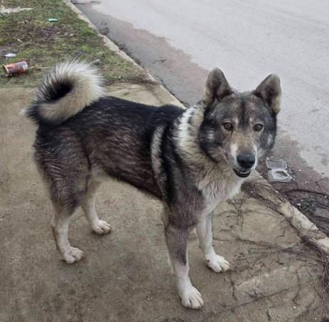 Bulgaarse rescue hond gedumpt op straat nadat zijn eigenaar, die wolf/hond kruising honden fokte zijn bedrijfspand in de steek liet en ook de hond op straat dumpte.