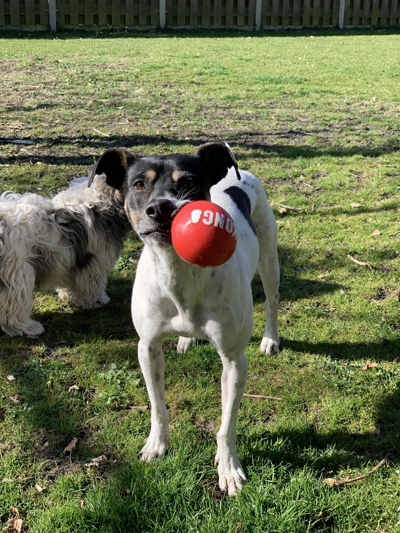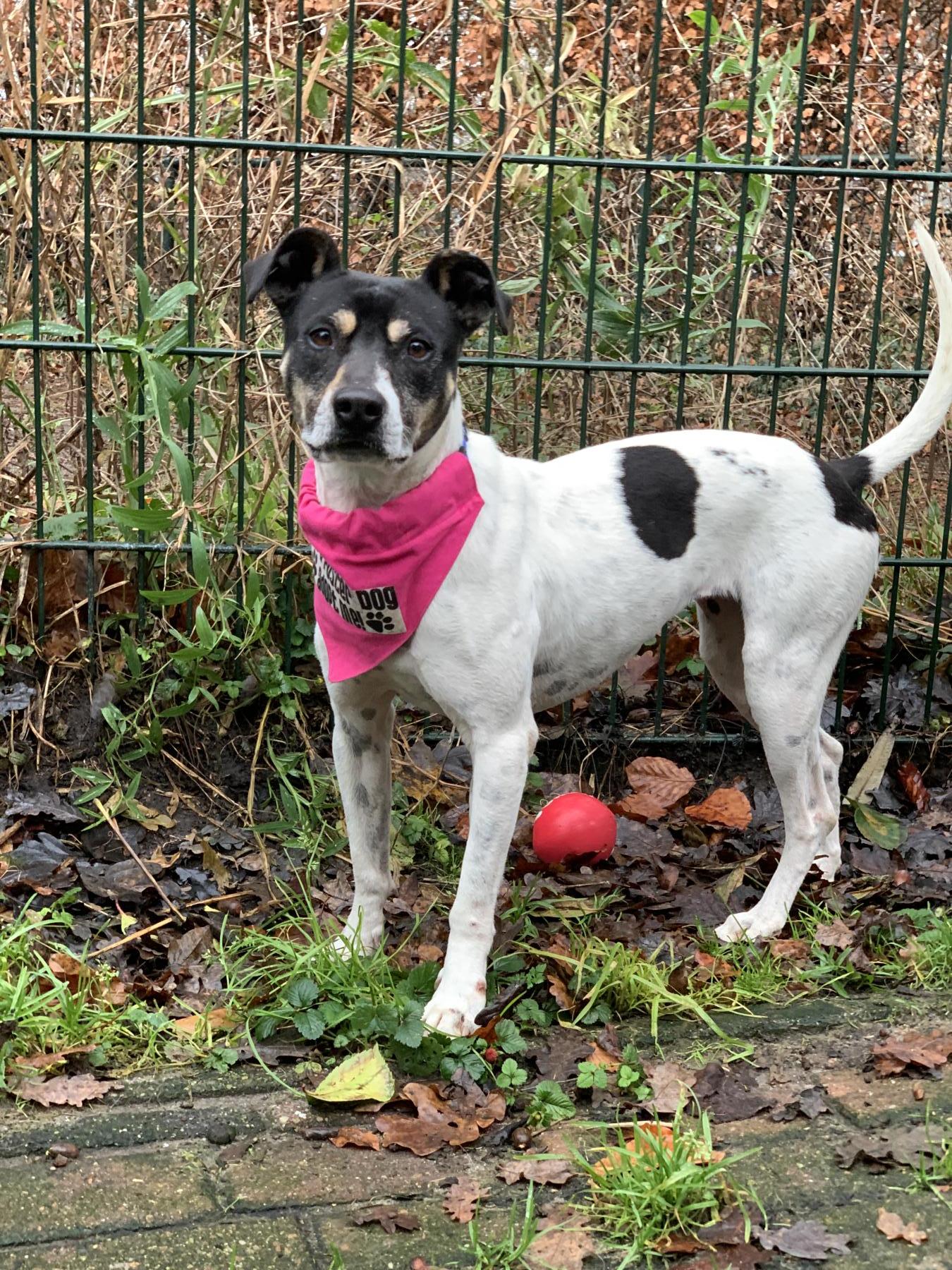 Trufa hebben we het afgelopen jaar goed leren kennen en gezien hoe graag ze buiten vertoefd, weer of geen weer. We hebben haar passie gezien voor ballen en knallen op het hondenveldje op het terrein van de opvang. Een omheinde tuin met gras diep genoeg (min. 15 meter) om dit te uiten is dan ook een vereiste bij adoptie. Net als een baasje die het oprecht leuk vindt om elke dag samen met haar buiten te ballen. Naast dat Trufa er van geniet, geeft het ballen haar houvast en geeft het voluit kunnen sprinten stress ontlading wat haar, als ze na adoptie moet wennen, zal voorkomen dat haar stressemmertje gaat overlopen.