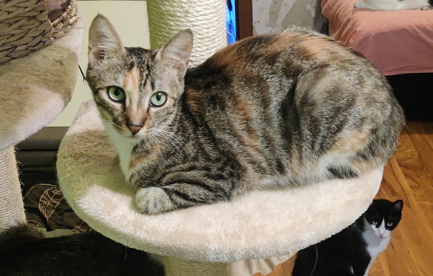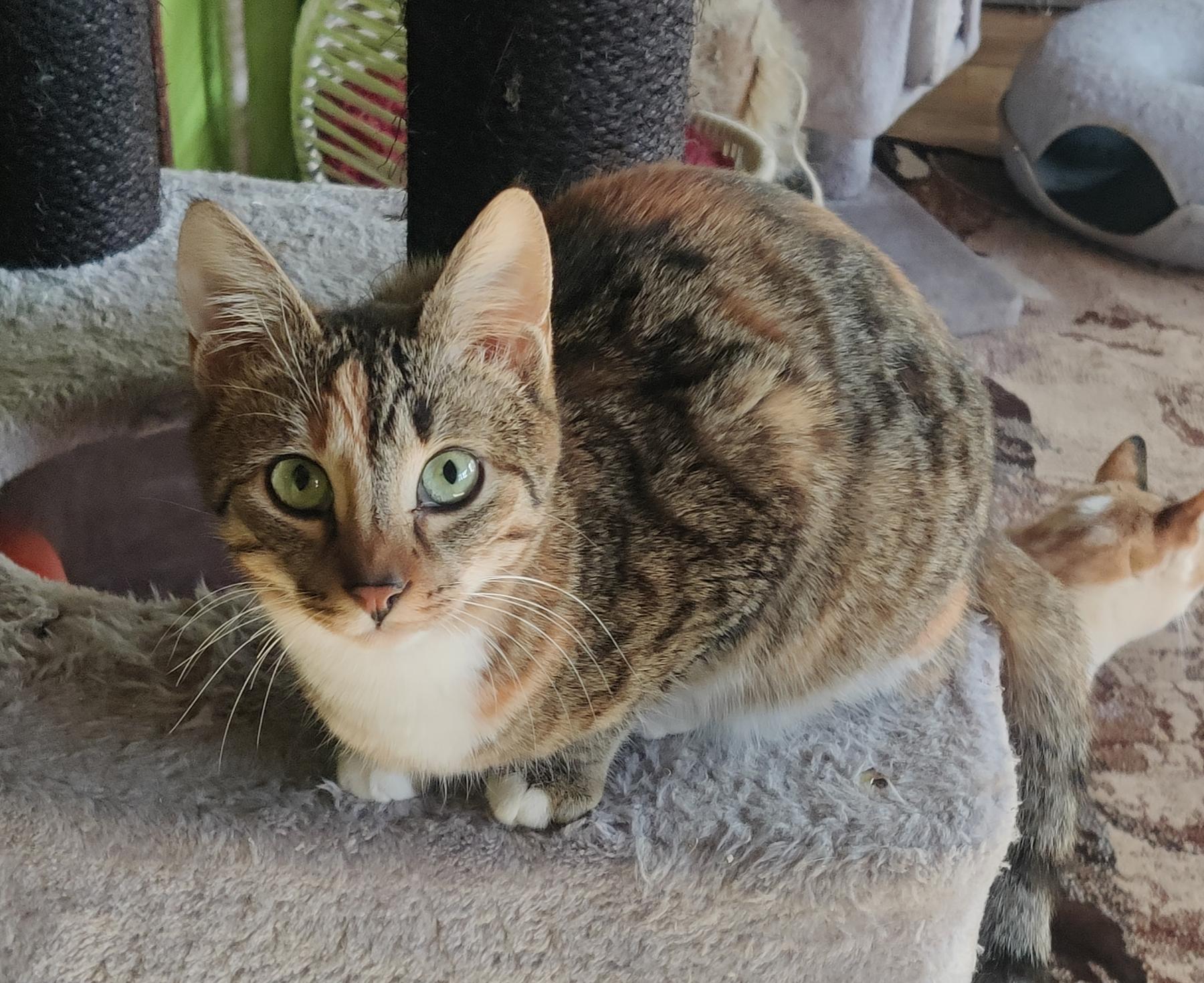 Beauty is een speelse, nieuwsgierige kat. Ze komt naar je toe wanneer ze wil. Ze zat als kitten in een pleeggezin en was erg knuffelbaar. Toen moest de rescuer haar meenemen en haar ergens in de grote groep plaatsen. Dat maakte haar wat afstandelijker. Voor haar was het in het begin eng om van het pleeggezin naar een asiel te worden verplaatst. Ze speelt met de katten en met de speeltjes. Ze is dol op het najagen van ballen, muizen en alles wat beweegt. Ze zal tijd nodig hebben om te komen knuffelen in een nieuw huisje. Voor haar staan spelletjes voorop, dus dat is een manier om haar van je te laten houden - speeltijd met haar doorbrengen. Ze is dol op de stok die op een hengel lijkt - een stok met iets eraan. Ze zal dat spelletje en de tijd die de persoon met haar doorbracht waarderen.