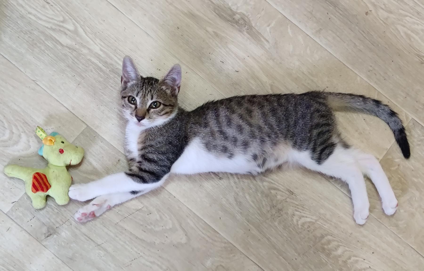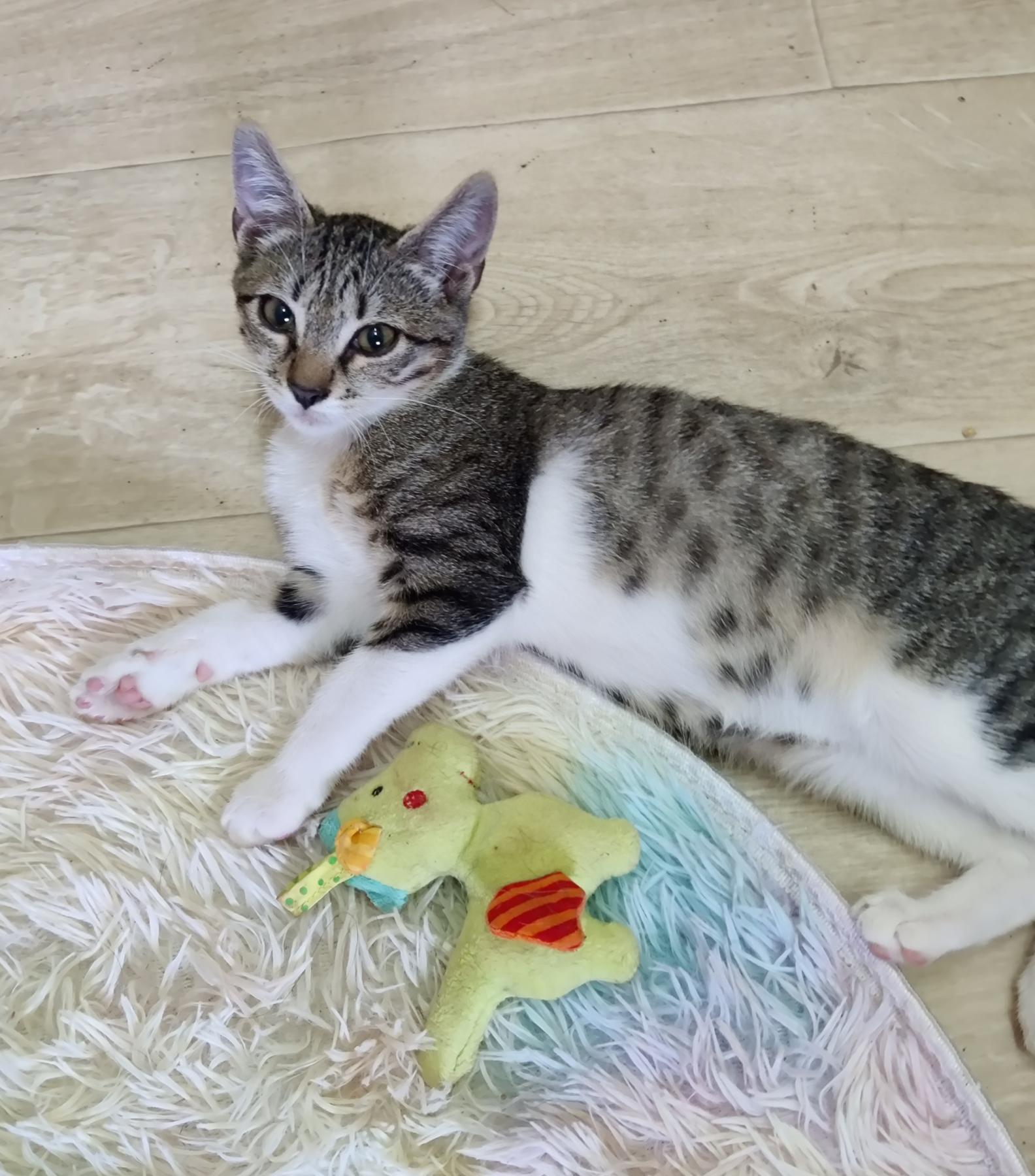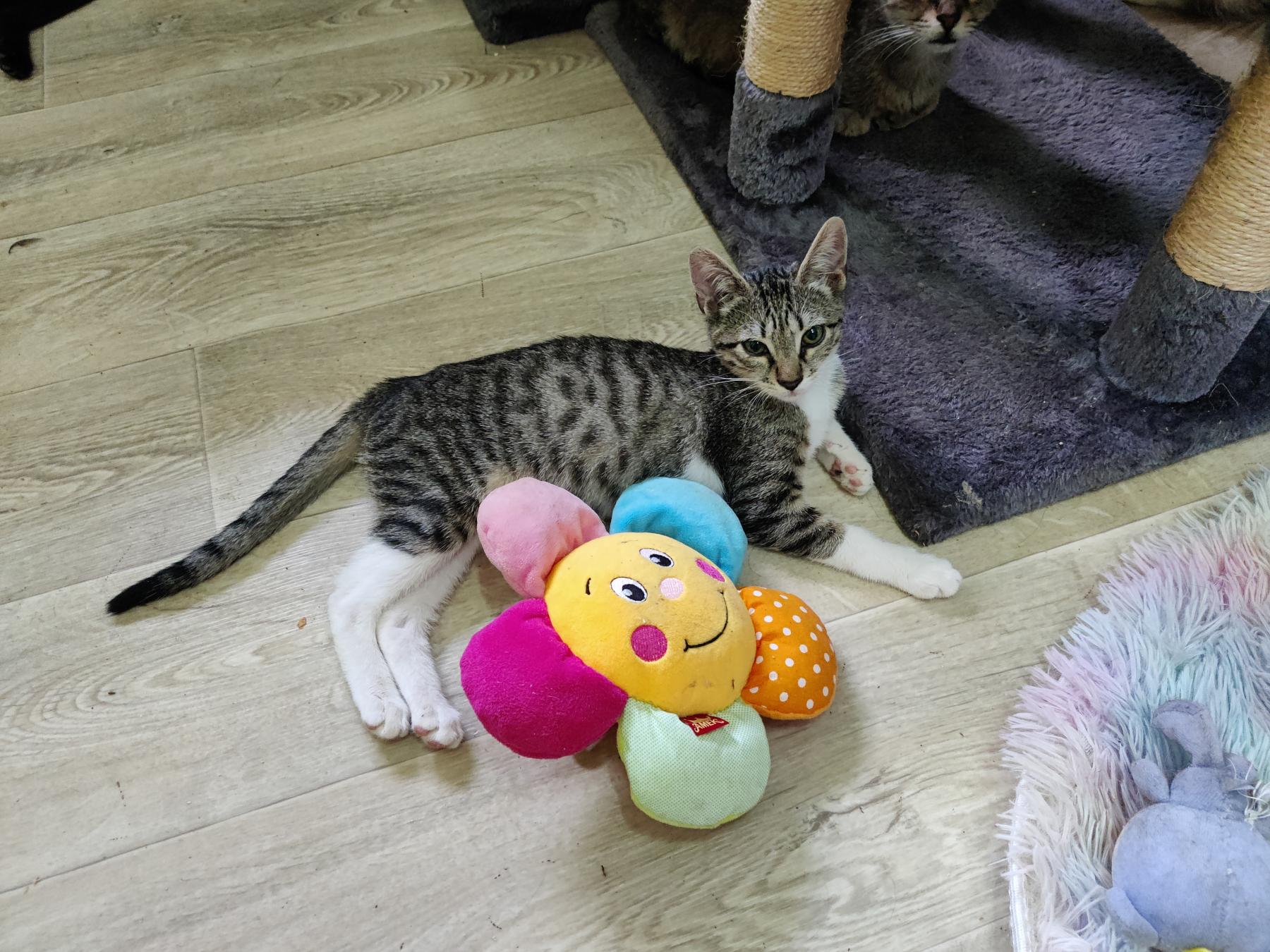 Emelia is een speels en dapper meisje. Ze is heel nieuwsgierig en heeft ook veel energie. Ze heeft een levendig karakter. Ze logeert samen met Simba en vier andere katjes in de opvang in Bulgarije. Ze is gevonden terwijl ze heel luid aan het huilen was. De rescuer verliet de dierenkliniek en vond haar daar buiten in de vuilnisbak.