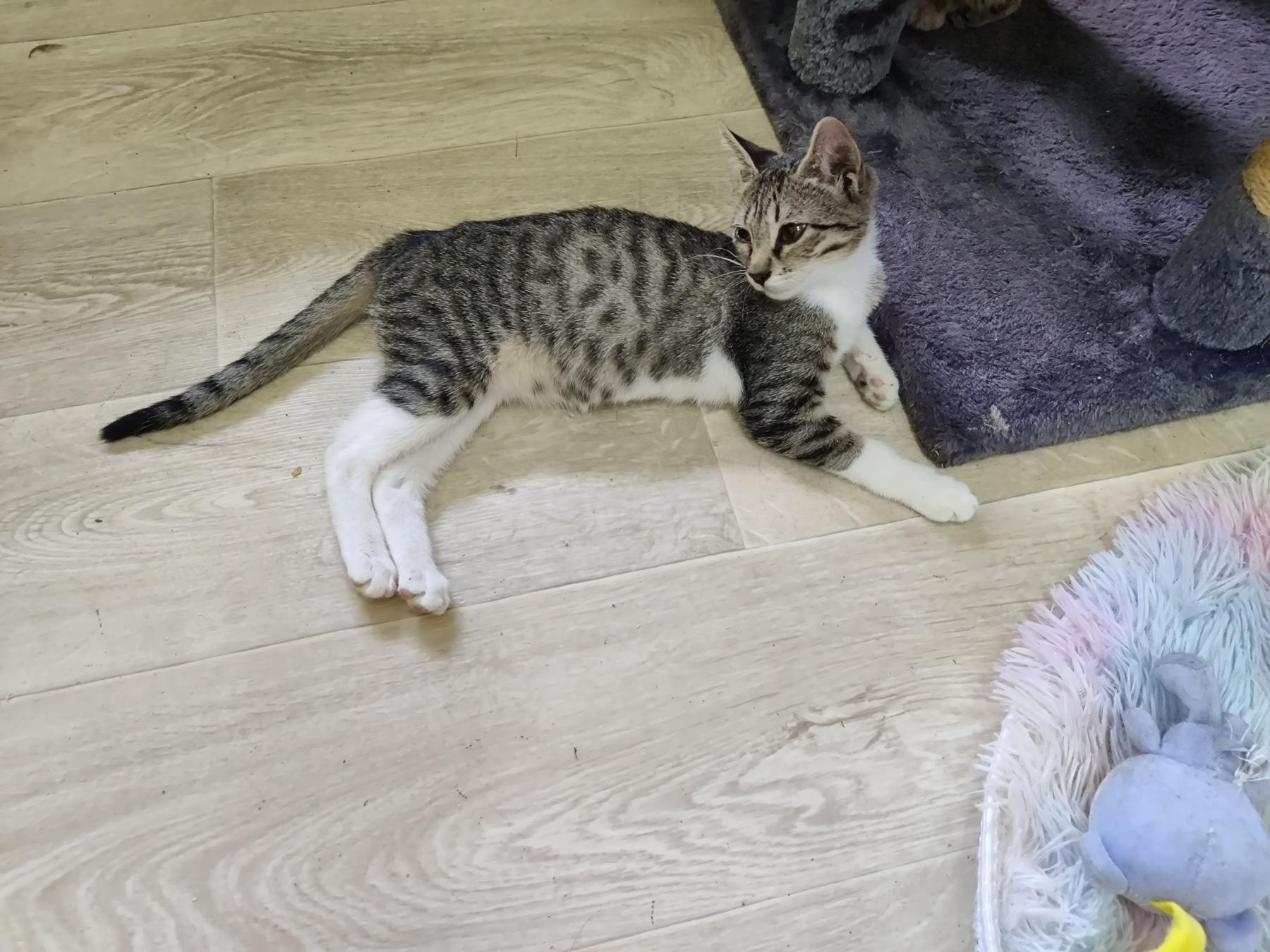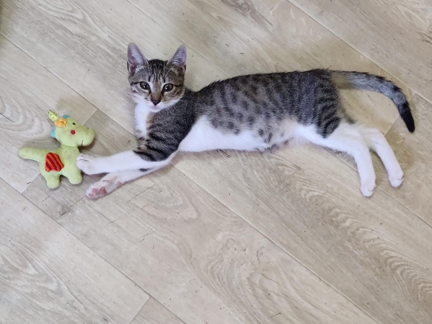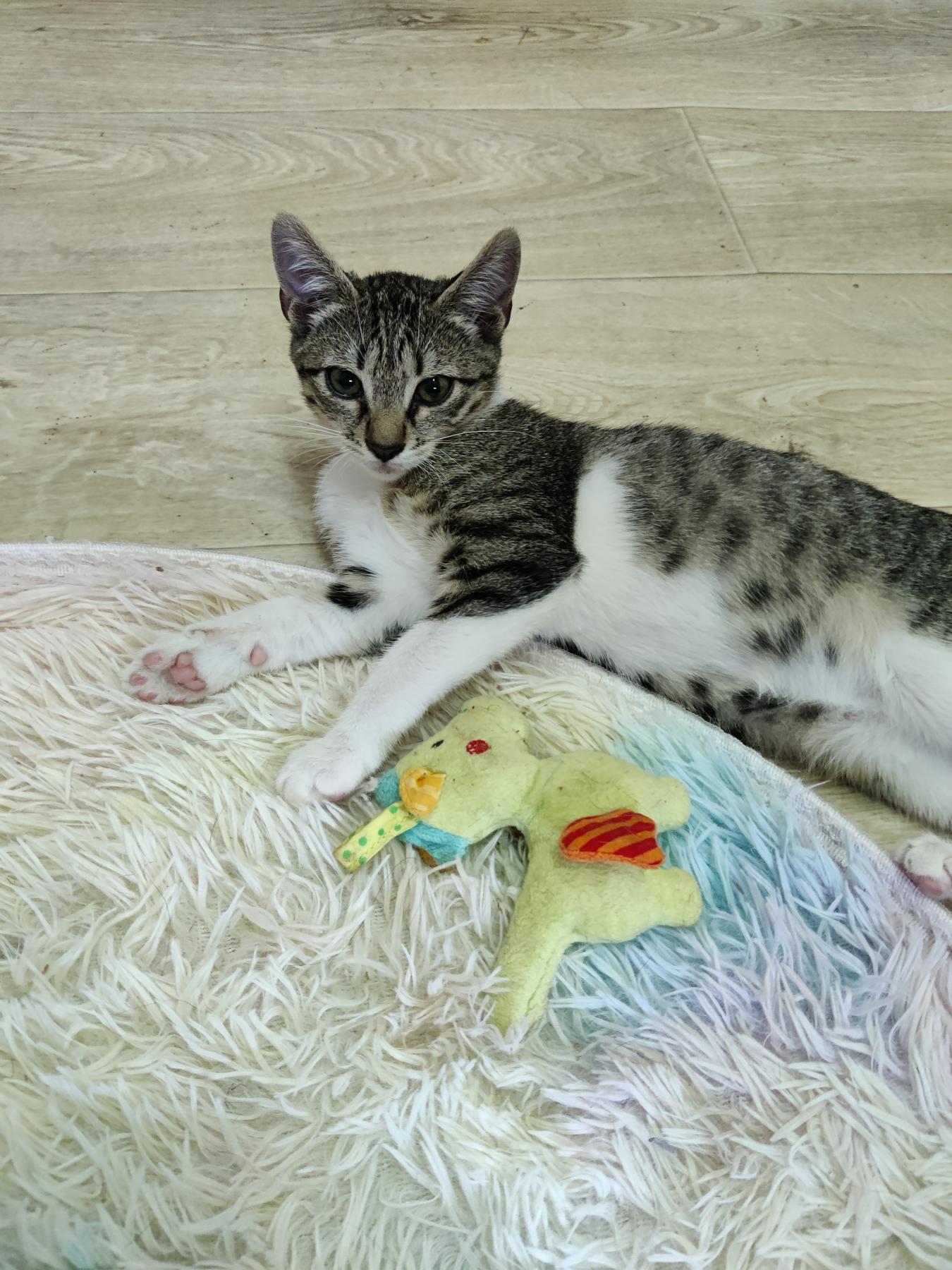 Emelia is een speels en dapper meisje. Ze is heel nieuwsgierig en heeft ook veel energie. Ze heeft een levendig karakter. Ze logeert samen met Simba en vier andere katjes in de opvang in Bulgarije. Ze is gevonden terwijl ze heel luid aan het huilen was. De rescuer verliet de dierenkliniek en vond haar daar buiten in de vuilnisbak.