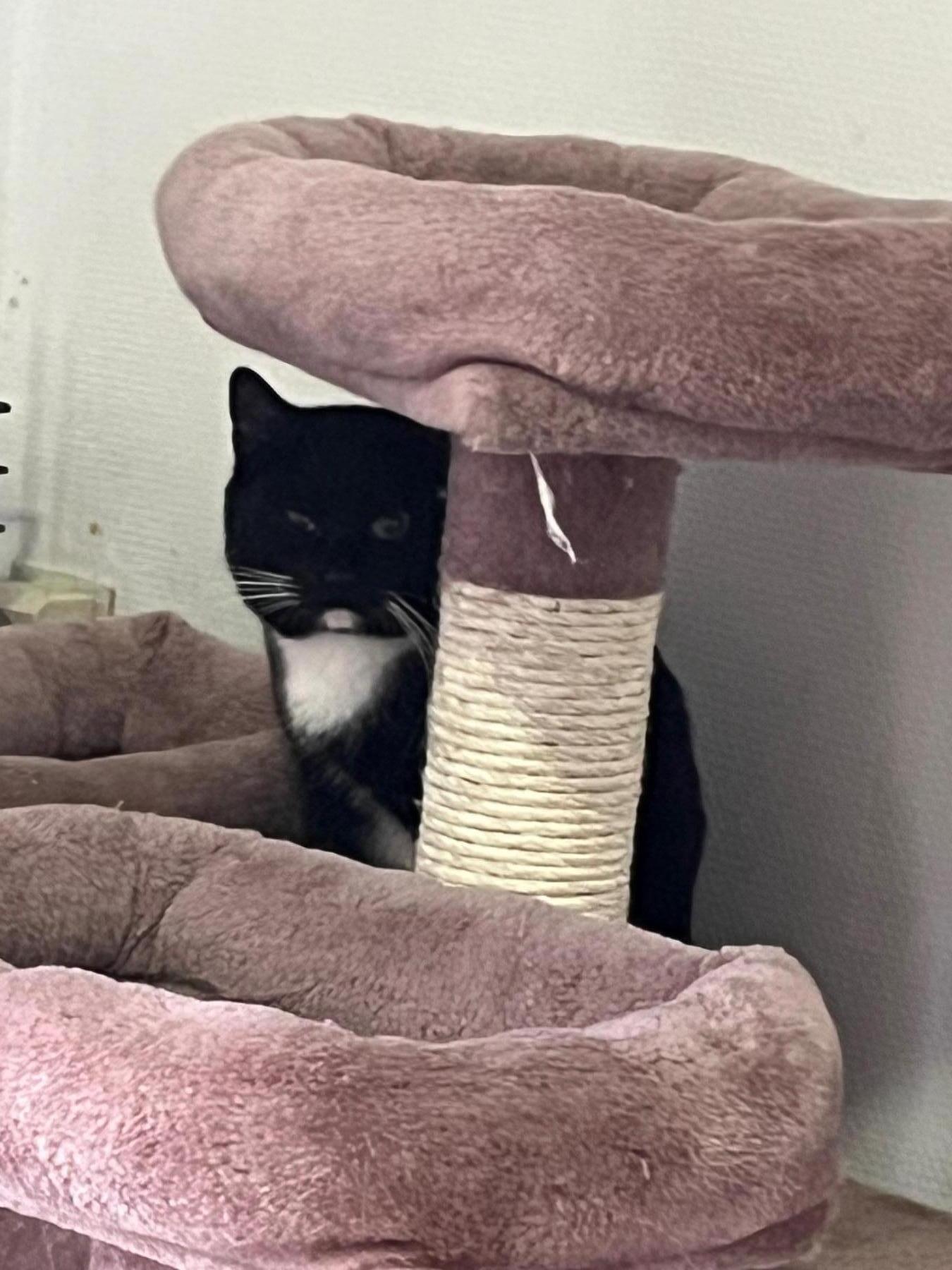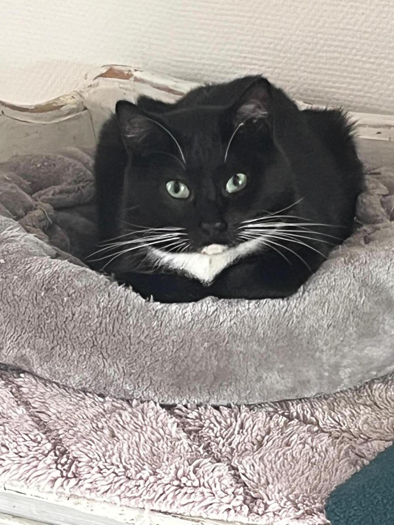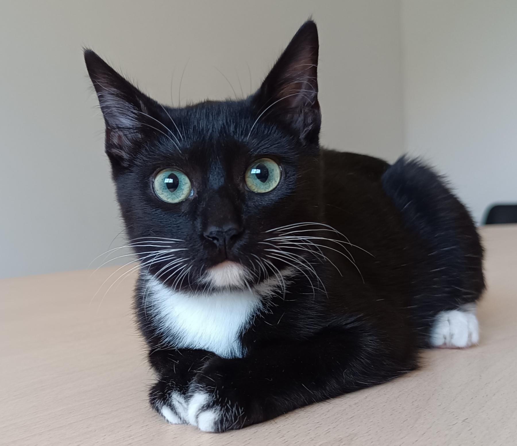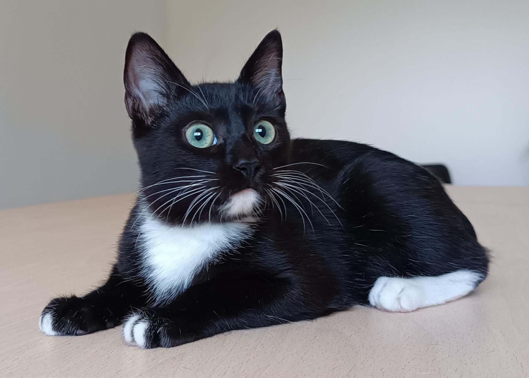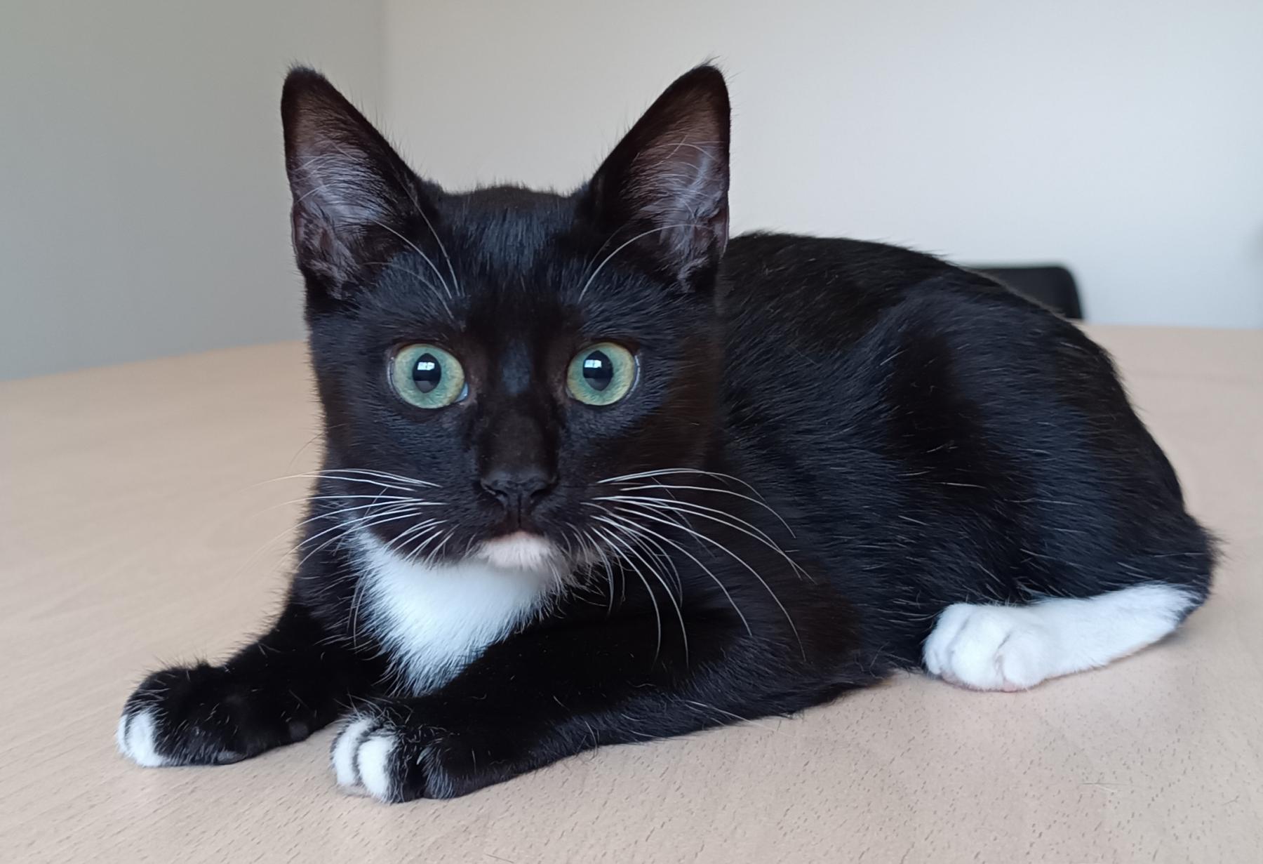 Fam is een heel nieuwsgierig en speels katje. Hij is sociaal en volgzaam, hoewel hij een beetje bang wordt bij mensen die hij niet kent en bij harde geluiden.