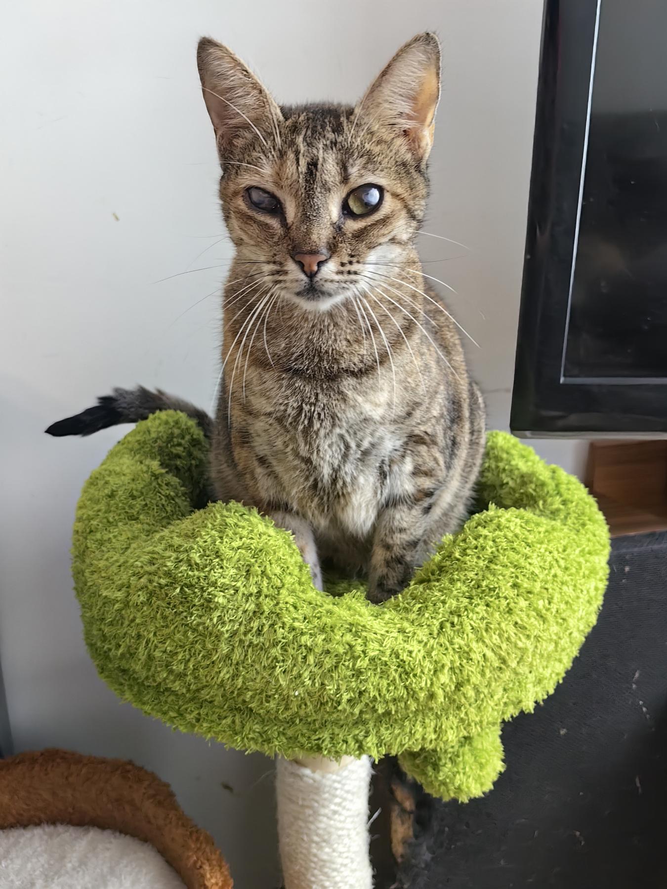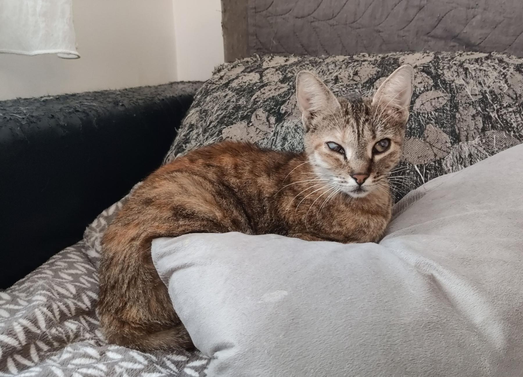 Luna is bijna volledig blind. Het is een heel speciaal meisje. Ze is aardig en heel knuffelig. Zodra je haar aanraakt gaat ze spinnen en met haar pootjes kneden. Luna vindt het heerlijk om met mensen te knuffelen