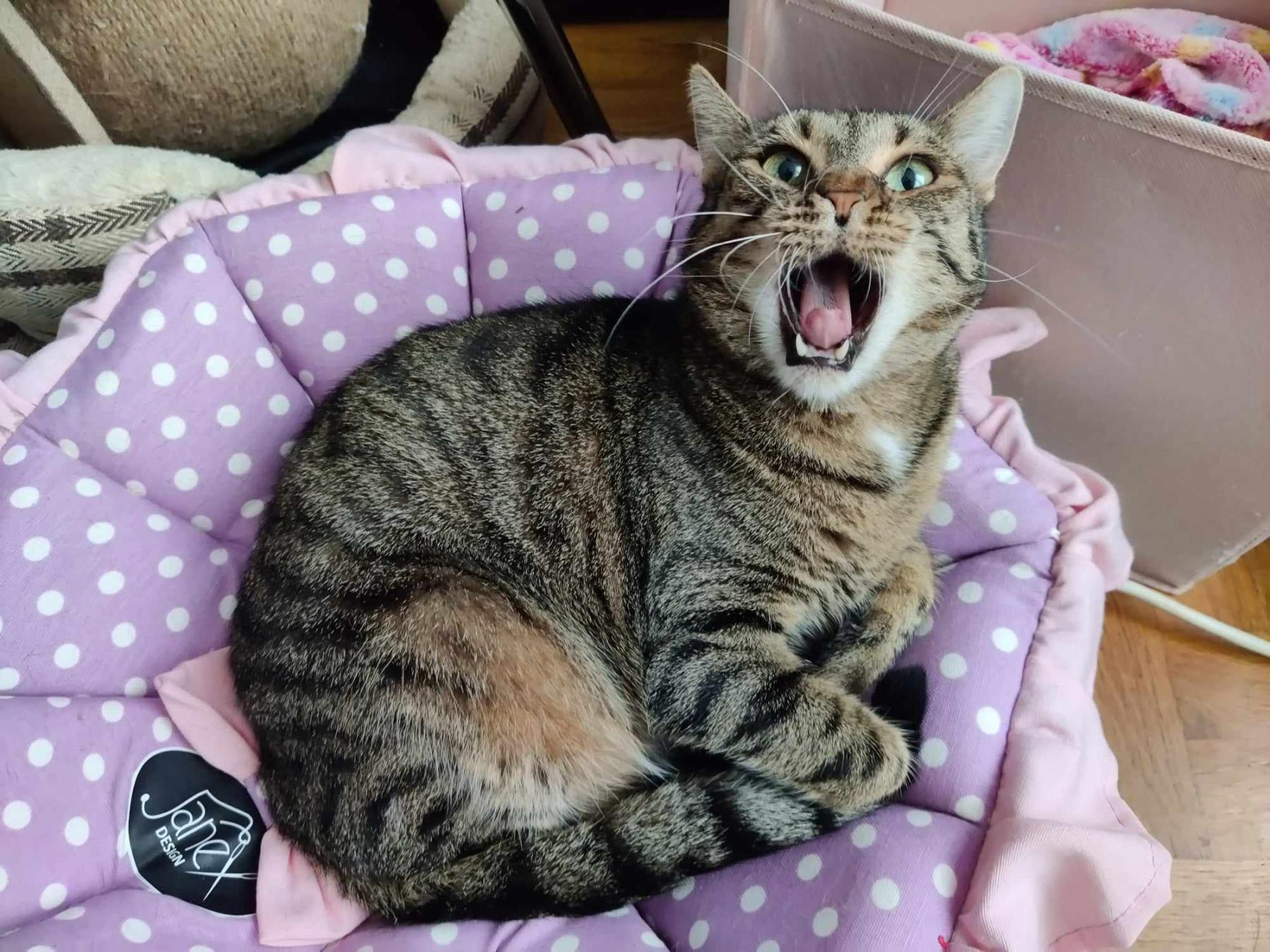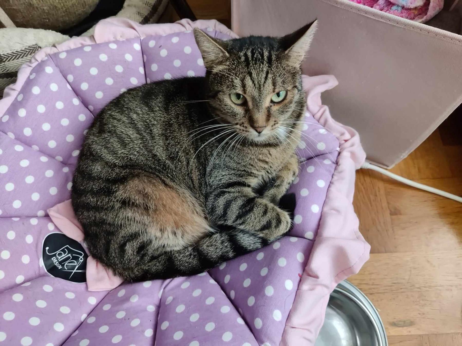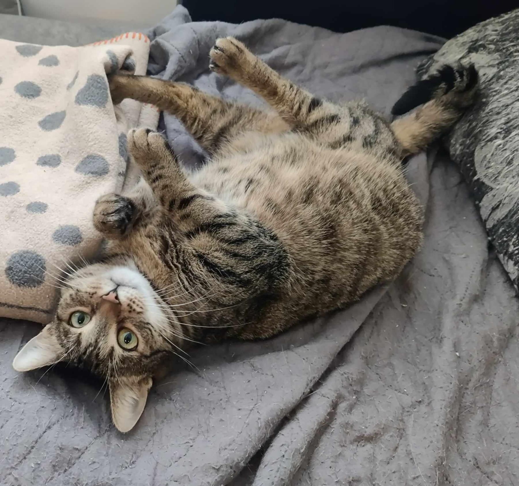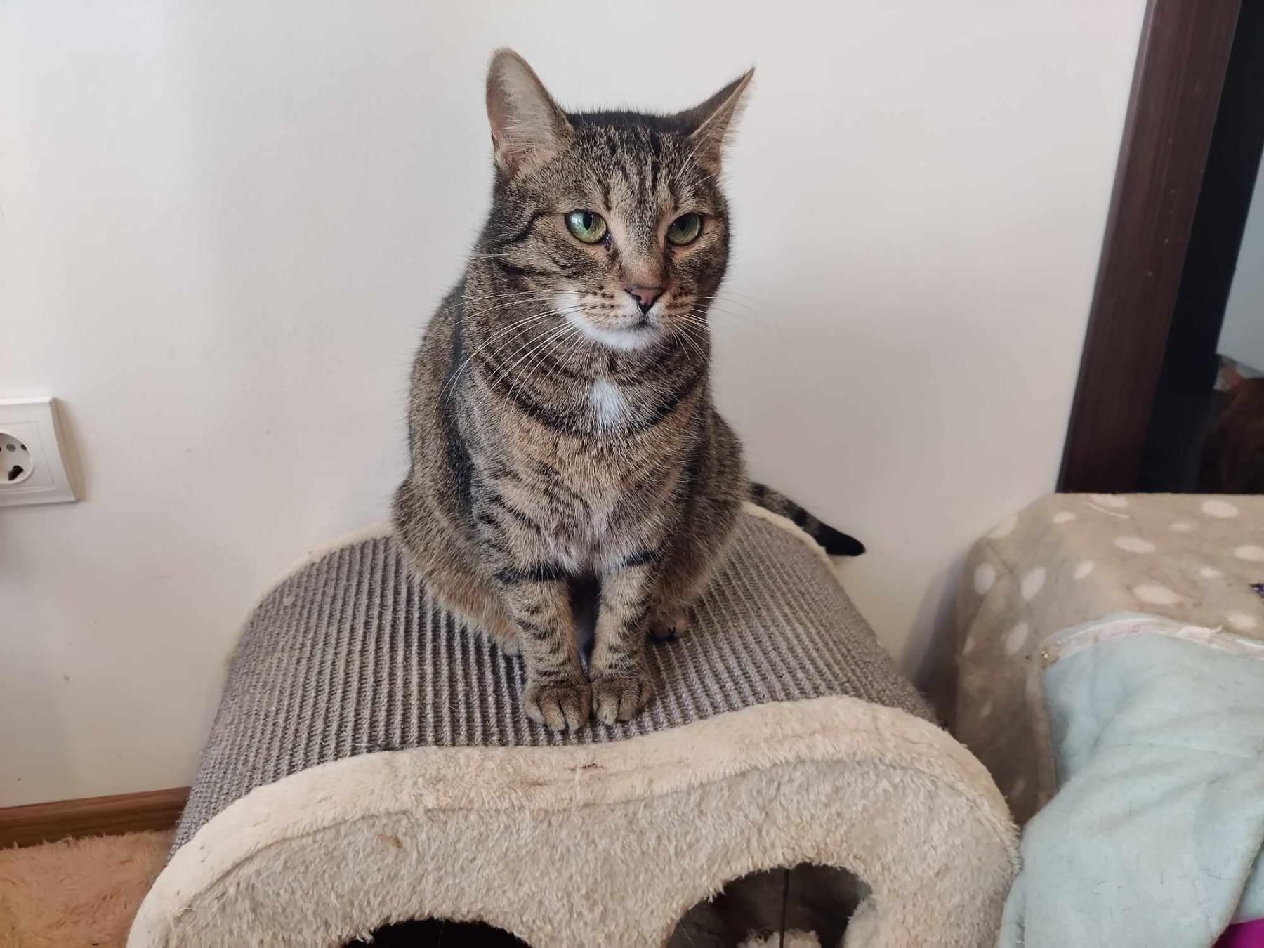 Marcy is een luie, knuffelige en grappige poes. Ze heeft eten, aandacht en ruimte nodig.
