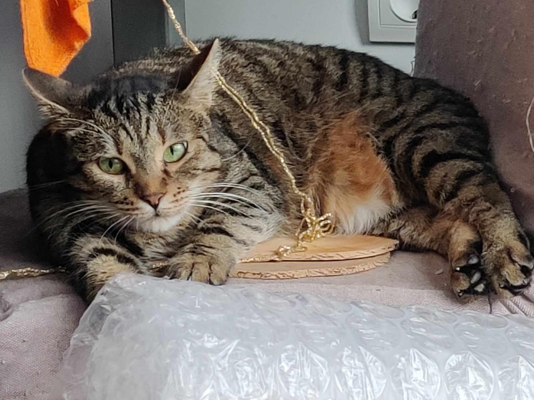 Kerst 2022. Een man belde rescuer Liliya en liet haar sprakeloos achter. Zijn ex-vrouw is psychisch ziek en ze vertrok een maand ervoor naar de UK. Het appartement waar ze woonde stonk en de buren belden hem op. Hij opende het appartement. Alles lag vol afval en opeens zag hij wat rondrennen. Het was Marcy, die zichzelf een maand in leven heeft weten te houden door water uit een emmer in de badkamer te drinken en het eten? Ze weten het niet, waarschijnlijk lag er ergens voer in huis. Ze is gevangen met een vossenval. Ze was botjes met een vel eroverheen. Ze was vies, stonk en ze schreeuwde de longen uit haar lijf. Het was verschrikkelijk haar zo te zien. De dierenarts heeft haar onderzocht en beveistigde dat de organen niet waren aangestast. Ze herstelde gelukkig snel en ze ging met Liliya mee naar huis, omdat ze gestresst raakte van de grote groep.