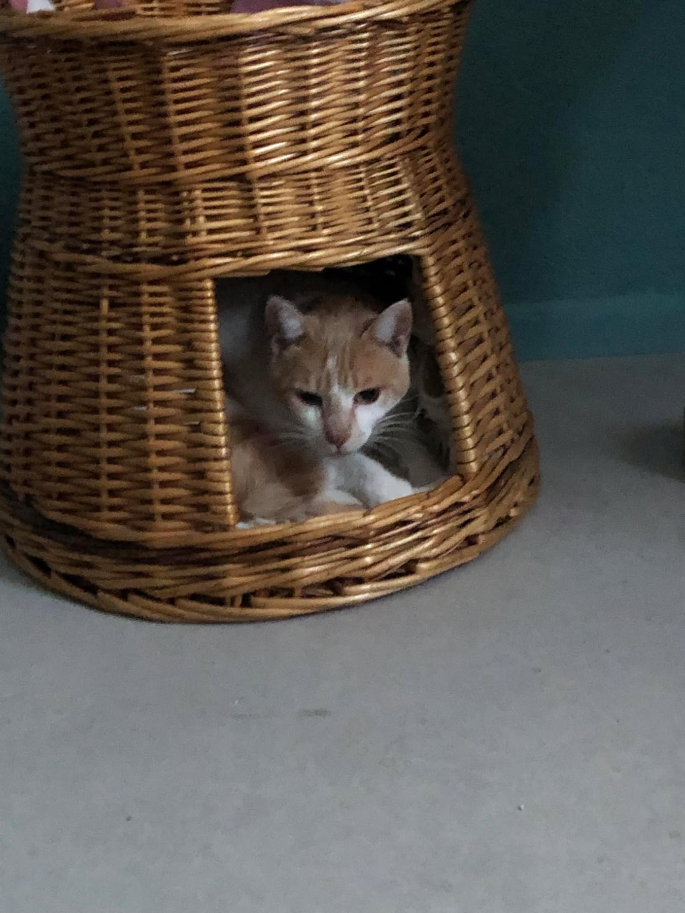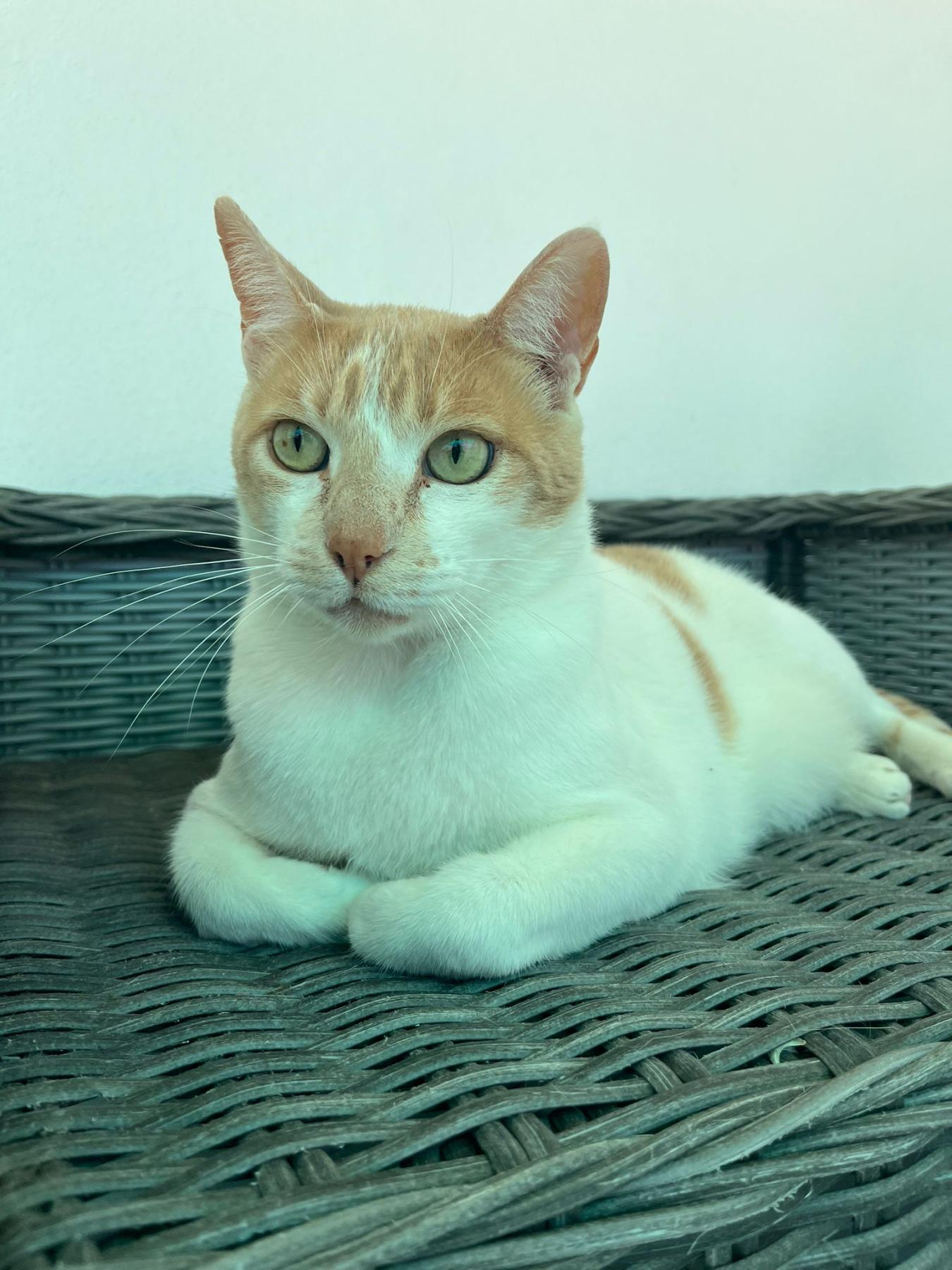 Mario kwam als jonge kater in een Spaans asiel terecht waar hij alle zorg kreeg. Helaas heeft men niet de tijd en mensen om zich echt bezig te houden met schuwe katten. En Mario is schuw. Lief, schuw, knap en met een hangbuikje. Mario heeft tijd nodig. Als hij staat te eten kun je hem aanhalen en dan gaat zijn kontje de lucht in. Maar dit duurt even. Omdat Mario een lekkerbek is, is het beter het voer wat te verdelen over de dag zodat Sara ook haar deel krijgt. Mario is best snel met eten en dol op natvoer. Samen met Sara staat hij 's avonds te 'zingen' om je duidelijk te maken dat het nu toch echt wel tijd is.
