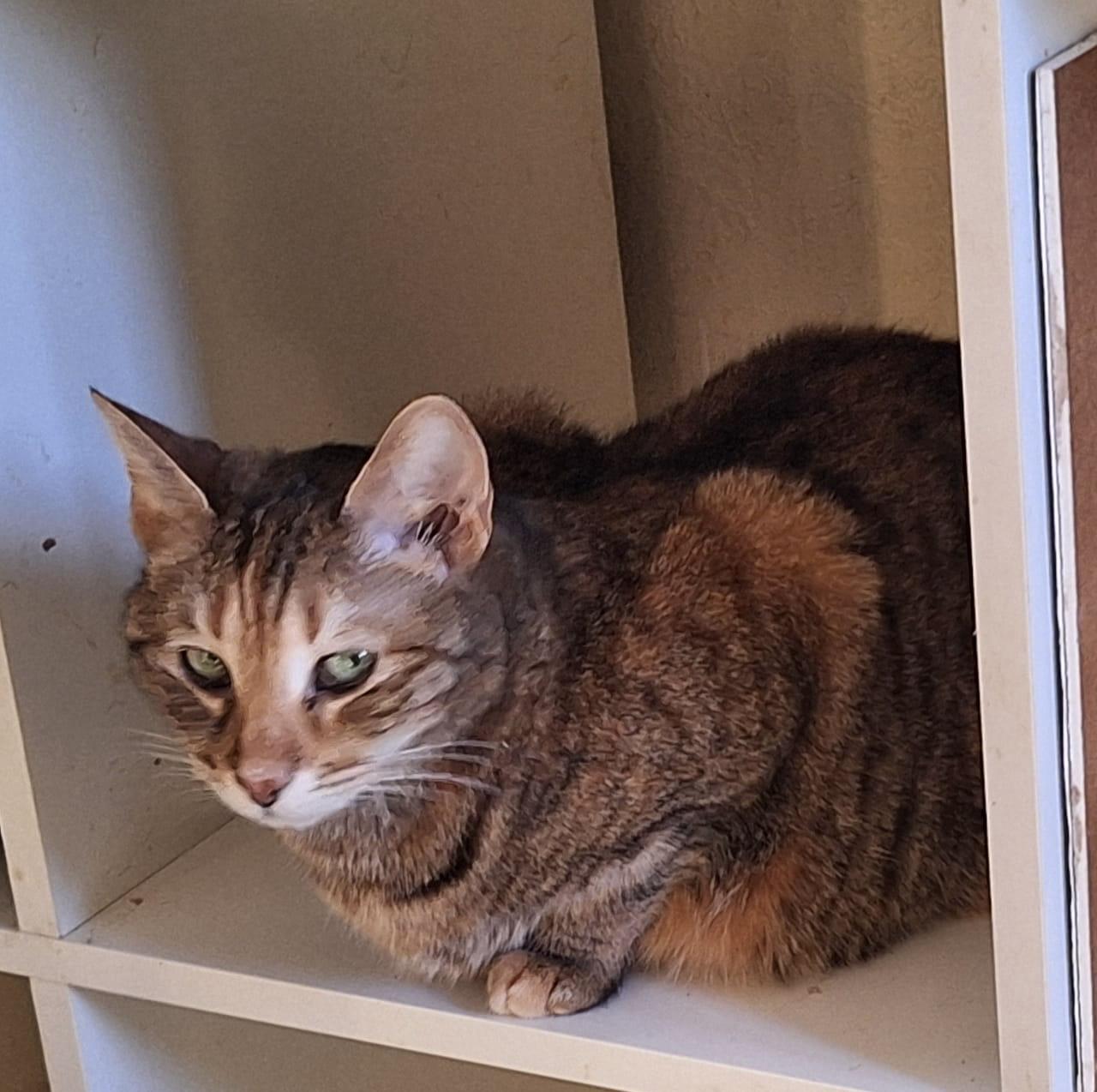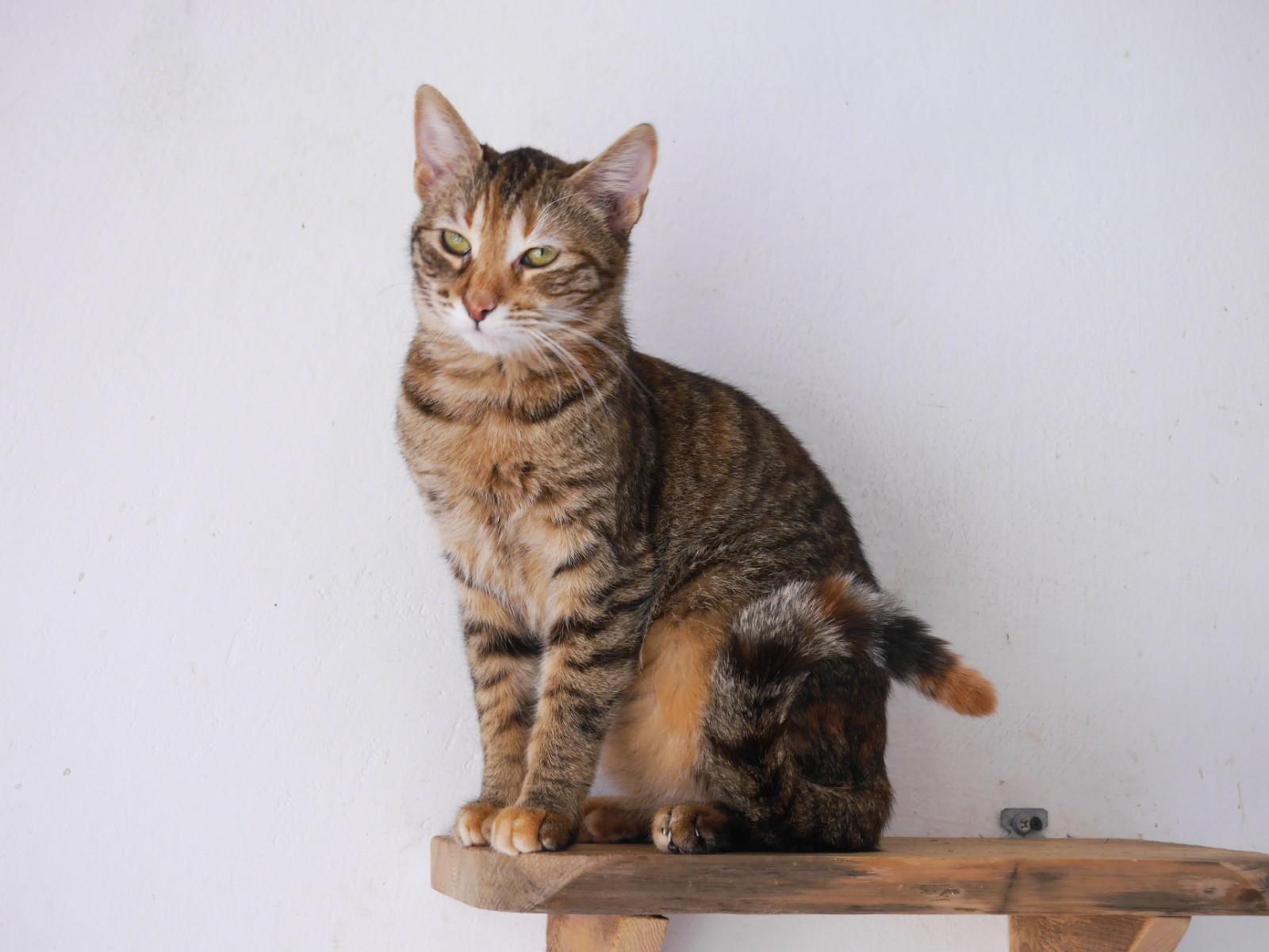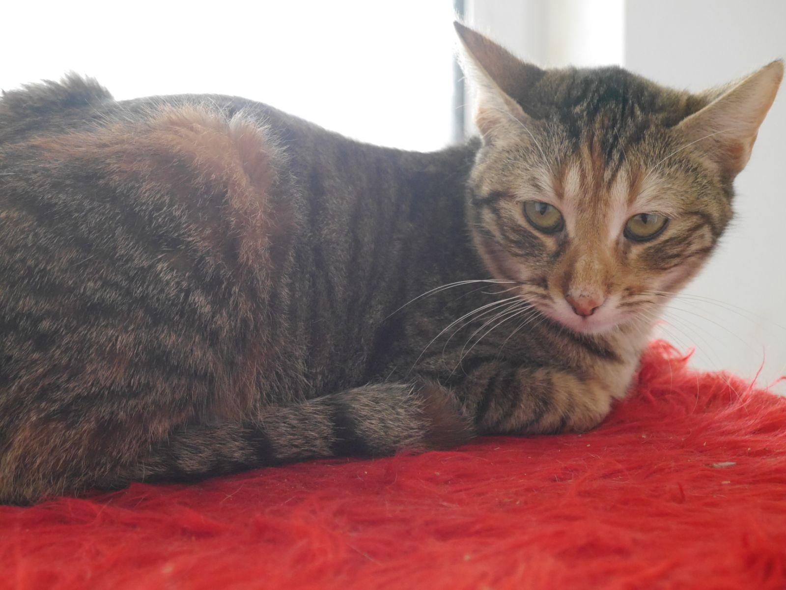 Nola is in Bulgarije gevonden door een dierenarts. Ze is opgenomen en geopereerd aan haar pootje. De dierenarts nam haar mee naar huis om bij te komen na de operatie. Daarna brachten ze haar naar de opvang. Nola was in shock in een grote groep. Voor een kat is het verschrikkelijk, de overgang van een normaal huis naar een opvang / asiel.