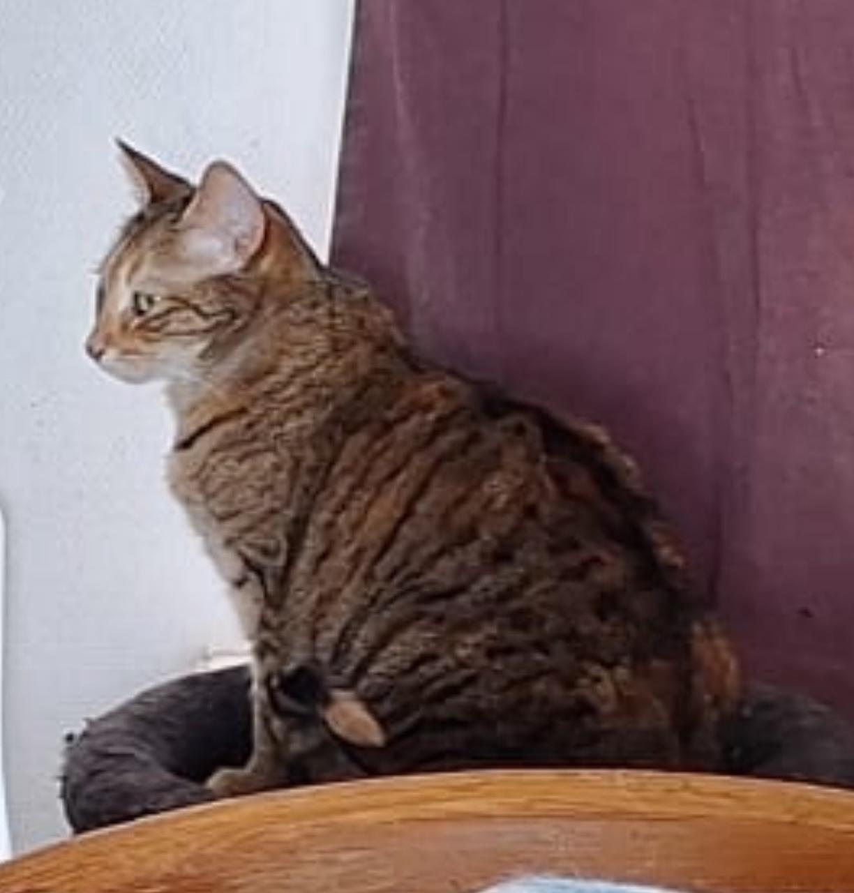 Nola slaapt graag lekker in haar krabpaal, liefst een beetje hoog. Een keer was er teveel onrust in huis, daar schrok ze zo van dat ze zich verstapte en ze een tijdje last had van haar pootje, maar dat is inmiddels weer helemaal over. Ze laat zich zo nu en dan even aaien maar het moet allemaal een beetje rustig zijn. Het is een zachtaardig en lief diertje.