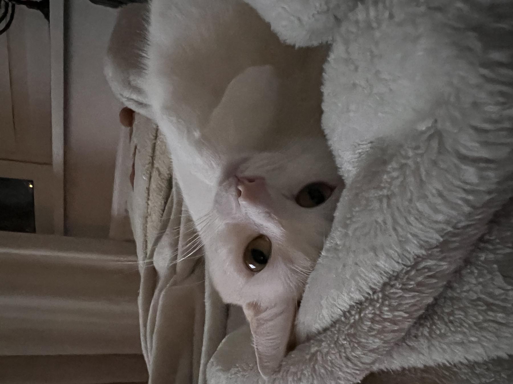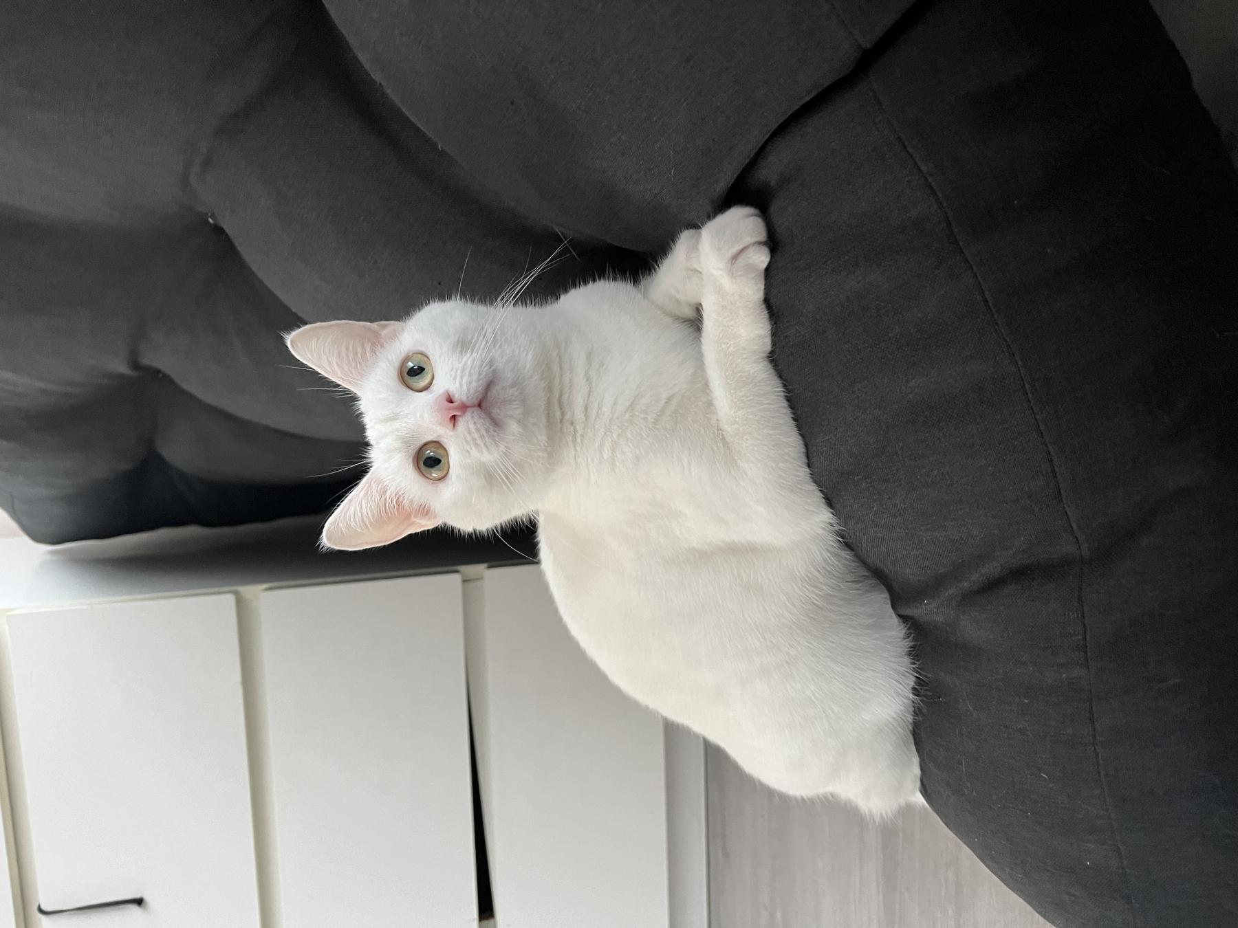 Een hele lieve aanhankelijke poes. Ze kan schuw zijn naar mensen maar als ze eenmaal aan je is gewend knuffelt en speelt ze graag. Wel rekening houden dat je geduld moet hebben met haar zodat ze zich op haar gemak voelt.