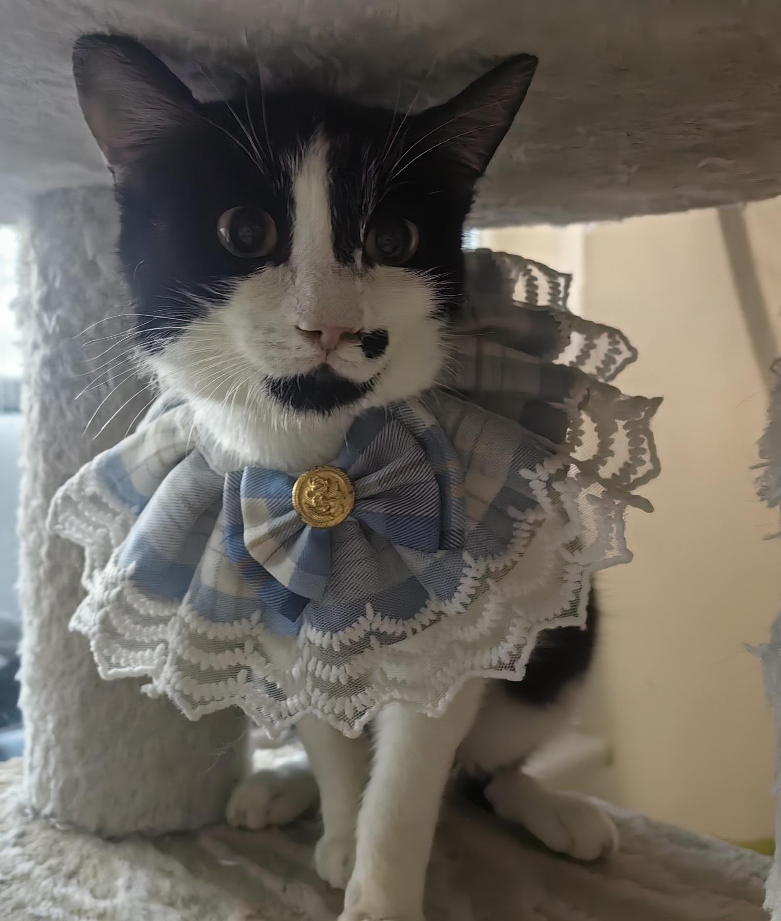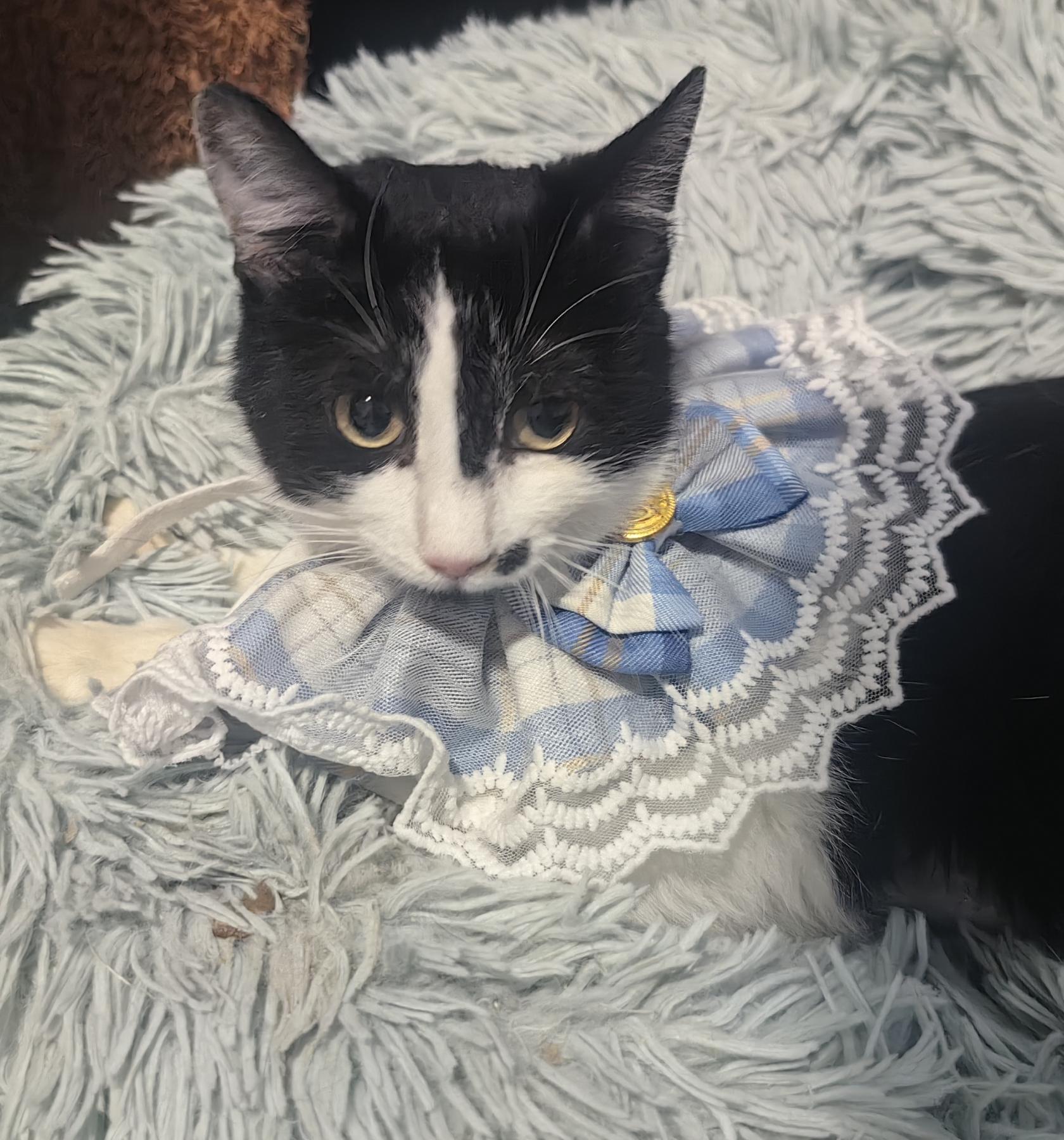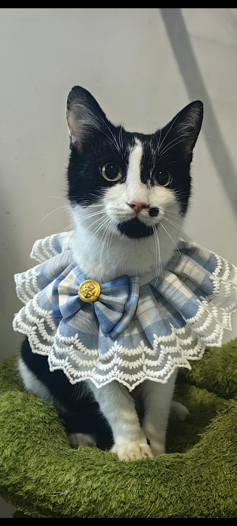 Tuxi is lief, aardig, sociaal en heel aanpasbaar. Hij begint zelfs te spinnen als hij de rescuer een andere kat ziet aaien. Hij is heel erg schattig.